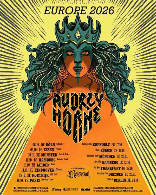 Norwegian rock powerhouse Audrey Horne has announced a series of live shows for autumn 2026. The tour will begin with a show in Cologne on October 8th and end with a show in Berlin on October 24th. Audrey Horne will play at Bahnhof Pauli on October 11th. Motorowl will be joining Audrey Horne on this... Continue Reading →