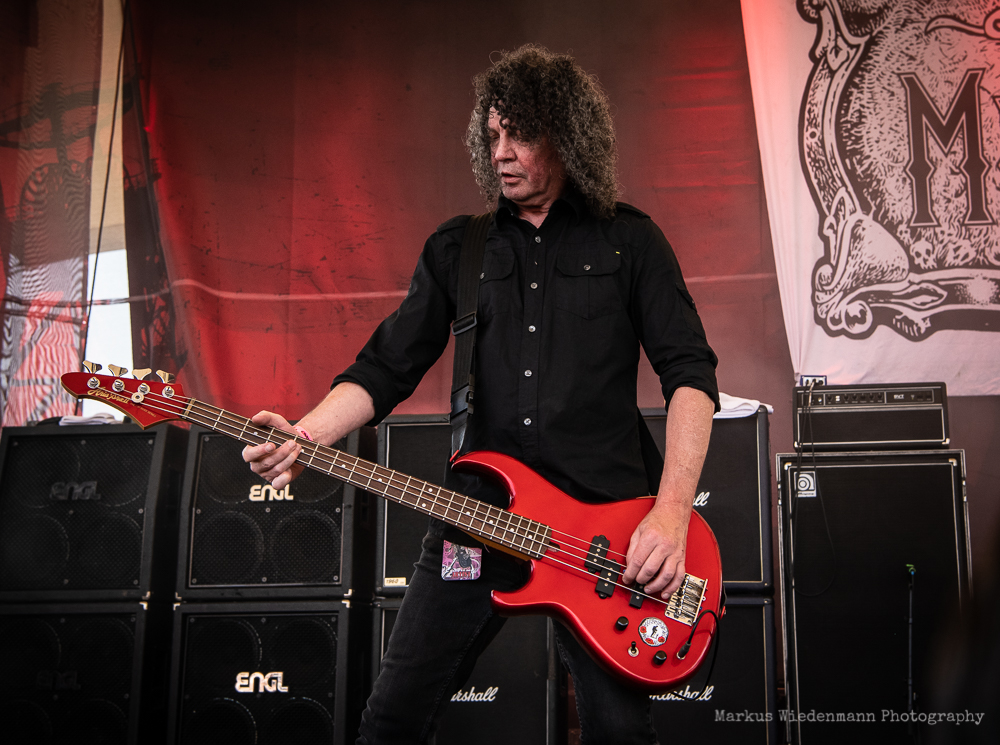 What was missing so far at RHF were some more complex songs with a more progressive approach. This gap could be closed on Sunday when Swiss prog thrash legend Coroner started into an hour of thrash metal classics. I love the Coroner records but for whatever reason I never got opportunity to see them live. This was another gap that could be closed on Sunday. Witnessing a show of this re-enforced metal legend is a create experience. It’s the marriage of musical savvy, excellent riffing, aggressiveness and complexity that leads to a constant ‘wow’-feeling. Looking on the amount of fans right in front of the stage showed in an impressive way that Coroner didn’t lose anything of their attraction. This is even more astonishing when considering the fact that the last studio album, ‘Grin’, was unveiled 25 years ago and therefor it wasn’t surprising that this album contributed with most of the songs played that day. However, the setlist comprised of all four longplayers and it was ‘Reborn Through Hate’, the opener of the debut, that has been very much welcomed by everybody at RHF.