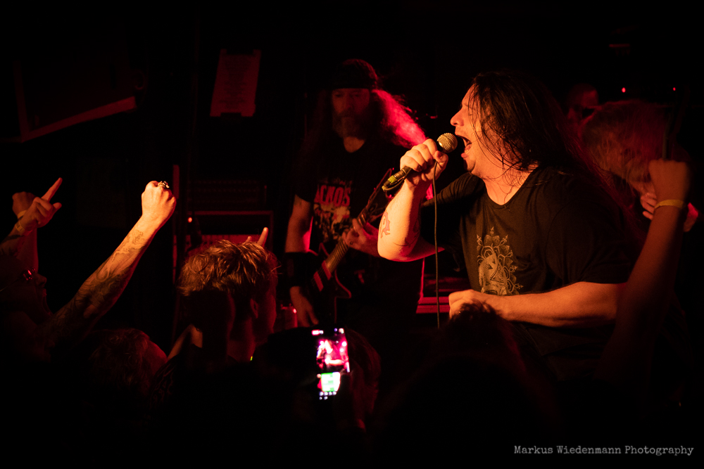 After a 50 minutes break it was up to death metal pioneers Cannibal Corpse to inflame a hellish metal inferno, and they delivered. From the first chords played up to the end ‚Corpsegrinder‘ and his gang navigated through a setlist that basically reflected the entire back-catalogue, including also ‚A Skull Full of Maggots‘ from the 1990 debut. 17 songs have been played that night and turned the Baroeg into a hellish madhouse with first moshpits starting with song number one. In the meantime temperature rose to more than 40 degrees Celsius inside with an estimated humidity of 100%. Hell can’t be much hotter than the Baroeg tonight. Cannibal Corpse belong to the spearhead of US death metal and the Baroeg show stated again why the veterans are icons in the fields of metal.