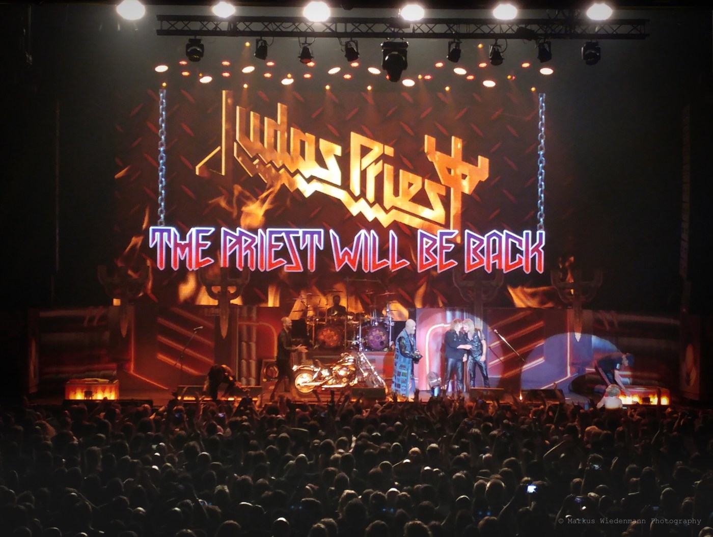 As you know from several news reports, it wasn’t possible for axeman Glenn Tipton to play the entire shows on that tour due to health issues. Tipton was replaced by no less than Andy Sneap and even though it’s a pity that Tipton couldn’t be part of the tour, Sneap was more than just a replacer. He was well intergrated and obviously enjoyed himself a lot by being on stage with the metal legend. He and Richie Faulkner unleashed twin guitar riffpower with both guitarists framing the Metal God himself. Rob Halford was again in good voice, showing that he still belongs to the best singers in metal, manifested not only, but especially, by his performance of the extremely demanding ‘Painkiller’.