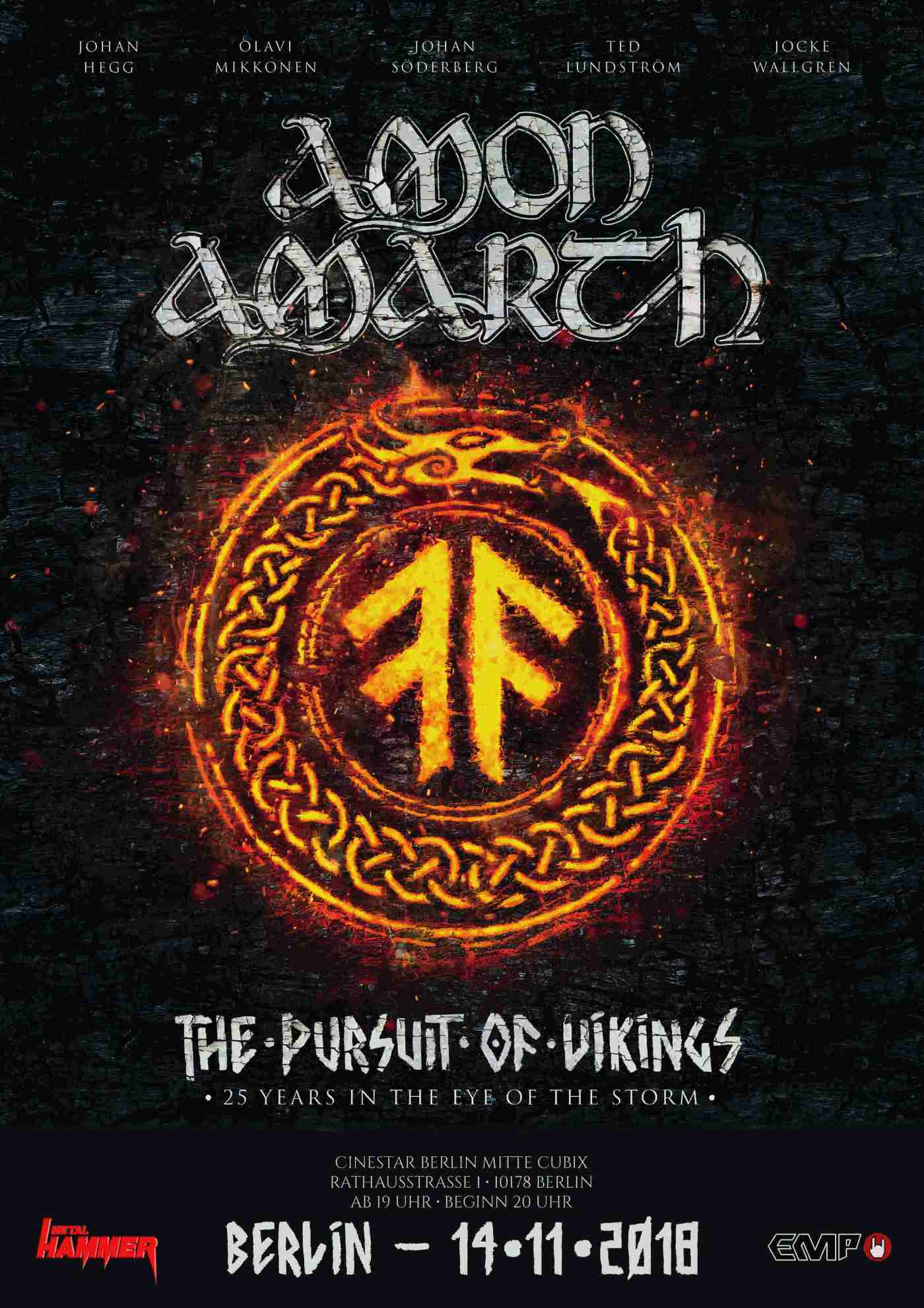 Swedish Amon Amarth will release a documentary DVD / live album entitled ‘The Pursuit Of Vikings: 25 Years In The Eye Of The Storm’ on November 16th. Prior to the release date, the band announced two cinema premiers of the documentary. The band will be present, with a Q&A- and signing session included at the end.