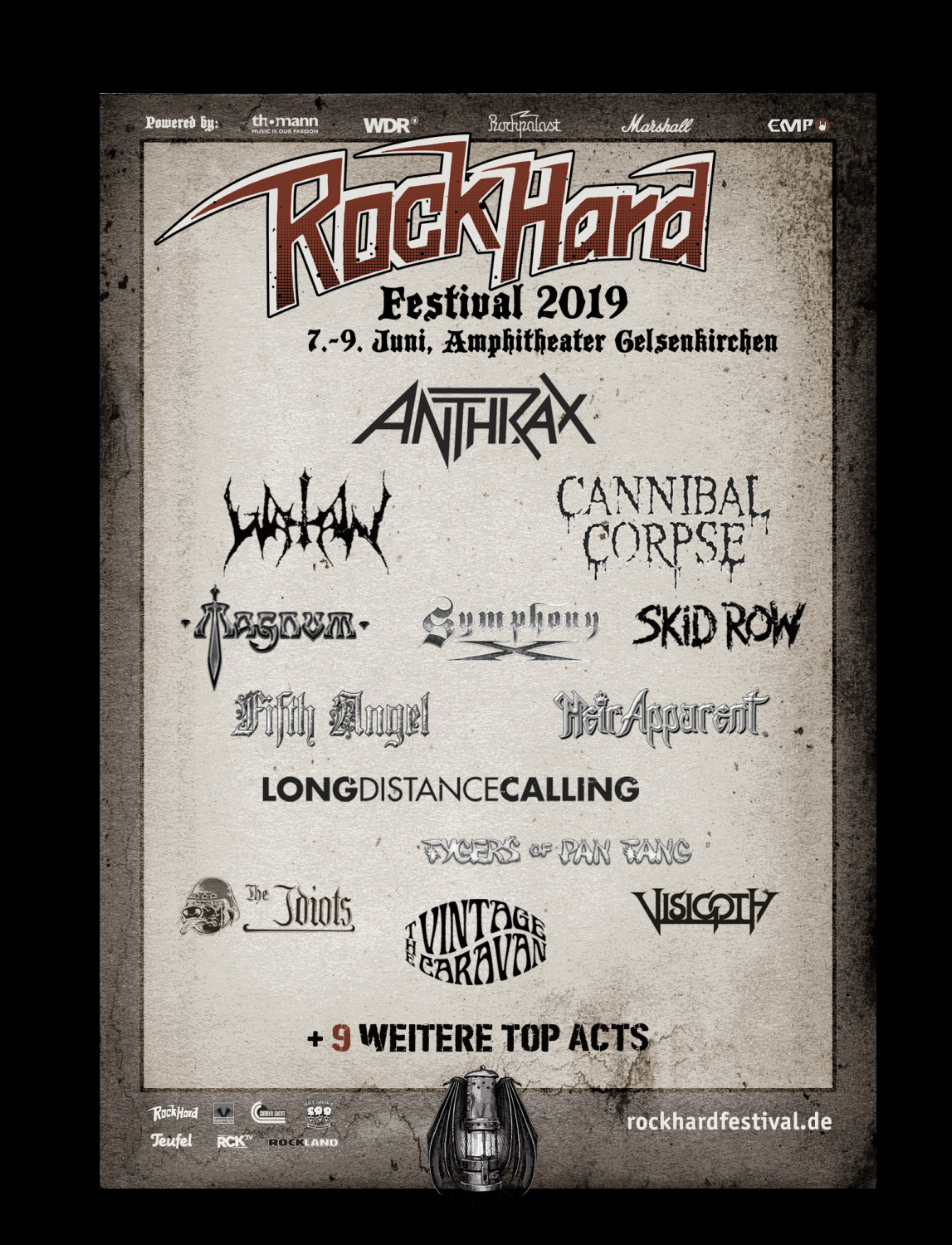 Two more bands have been confirmed for the 2019 Rock Hard festival. Thrash pioneers Anthrax and classic rocker The Vintage Caravan will perform a show the Amphitheater in Gelsenkirchen.
