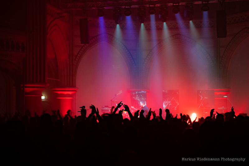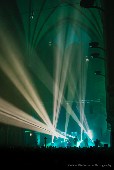 After a short break, the second part of the show starts and is dedicated to the anniversary album. Songs of ‘Avoid the Light’ fill the church in chronological order, again supported by the impressive light show that gains intensity by the night that came over Hamburg. The great thing is, that all the parts fit together so well. Songs, light, sound – a real Gesamtkunstwerk.