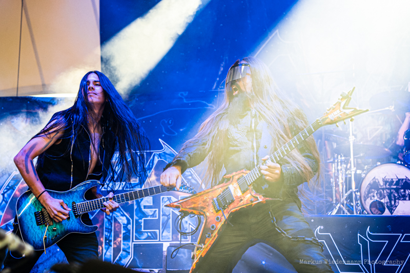 It is with Vulture a local act that got the challenging task of opening the three days festival. Having with ‘Ghastly Waves & Battered Graves’ a new album in the starting blocks, the festival show is a welcomed moment for the German quintet present new songs to a wider audience, but also perform some stuff from the acclaimed debut ‘The Guillotine’. Vulture‘s Speed Metal is an energetic wake-up call for everybody at the Amphitheater and even more for the guys that were still at the Camping site.