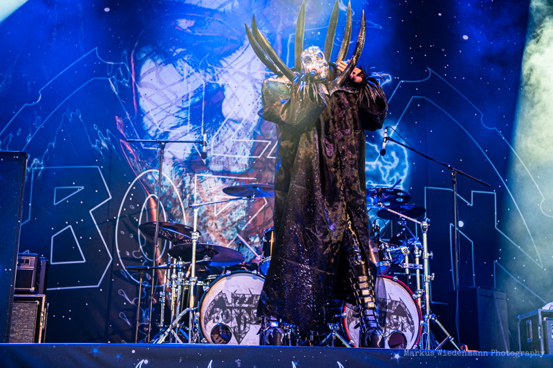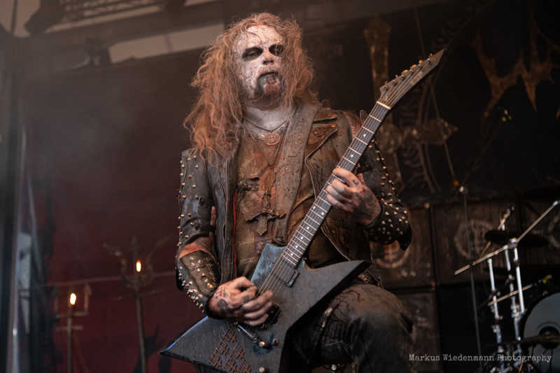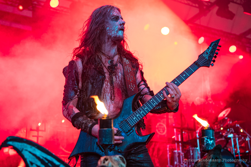 Things go quickly on day one. Lizzy Borden is one of the bands that have been announced rather late and they got the slot right before Watain unleashes their hellish spectacle. Talking about spectacle, the new Lizzy Borden show is one too. After a short intro it‘s showtime. The band appears on stage and with the first chords played also frontman marches in with a silver shiny mask and sings the first song from the drum raiser. After leaving the stage for a few seconds the singer returns with a weird three faces mask, which is the most bizarre moment of the entire festival and the beginning of a glamorous show. You even get a bit dizzy while looking at the three faces since your brain can’t process what the eyes see. Lizzy Borden presented a real cool show with many costume changes. The front row gets involved with some red paint (sorry, ‘Blood’) they get on their faces and ‘American Metal’ is performed with Borden enveloped in a Stars and Stripes flag. With songs like ‘Long May They Hunt Us’ the show has its Pop Metal moments. It’s reminds a bit too much of German Schlagerparade, but fans like it and since ‘Me Against the World’ follows, things are back to Metal rather quickly. All doubts after the latest more average longplayer are swiped away in a second with such an impressive show. Lizzy Borden, the positive and entertaining surprise of Day 1.