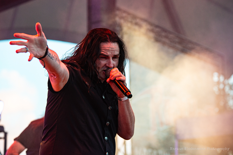 More demanding Metal music is also what fans can expect from Symphony X. The band of Michael Romeo returns to the festival after 21 years and the show at Rock Hard Festival is the final chapter of a four weeks tour. Symphony X stands for Progressive Metal with a solid punch. Frontman Russel Allen isn’t only an excellent singer, he’s a great entertainer too and it is him establishing a close ink to fans. Romeo adds great riffs and solos to the mix, while Mike Lepond and Jason Rullo work with horsepower on a forceful beat. Symphony X’ show is an entertaining one with good timing, since right after the final note fades away a next heavy rain shower pours out of dark clouds.