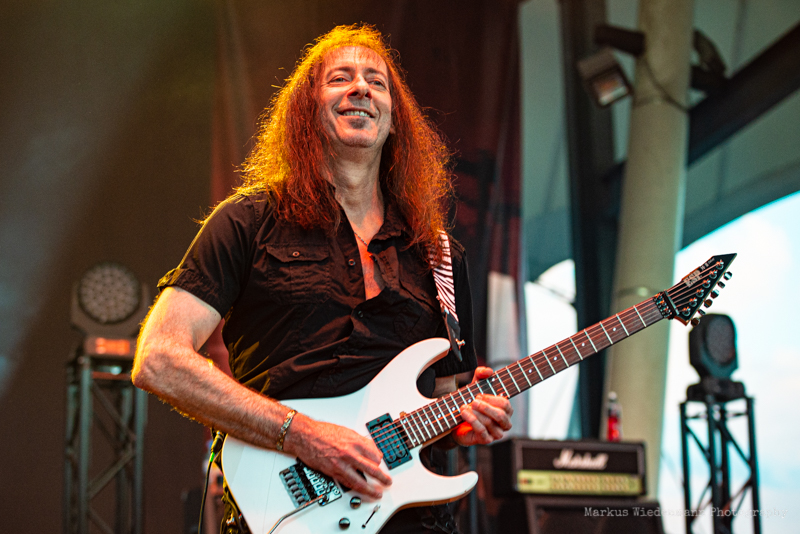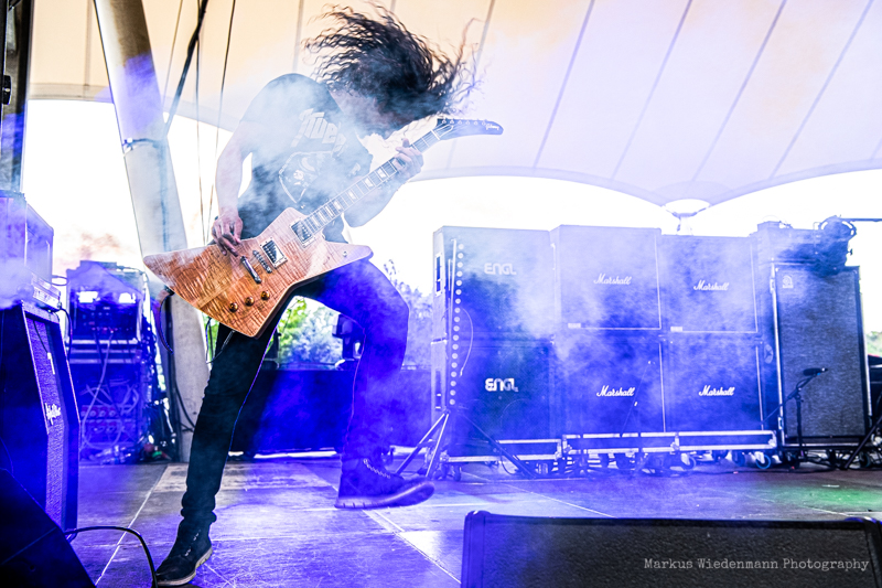 The revitalized prog veterans Heir Apparent, hailing from Seattle, bring a lot musical expertise to Rock Hard Festival and it is this show I was very much looking forward to. Having returned with a new album a few months ago it is the excitement of listening to these new prog metal songs live. However, it’s even a bigger thrill to listen to the old classics, songs from the genre defining ‘Graceful Inheritance’ album. Heir Apparent plays for almost an hour and it’s a show that doesn’t disappoint. Raptly listening fans fill the area in front of the stage, showing their appreciation for each song played by big applause. Heir Apparent plays very tight and even some gusts of wind can’t change a very positive impression. The set of the Metal pioneers is without any doubt a musical highlight. The quintet proves that good music can do the job and it was an enthusiastic crowd that expressed a big ‚Thanks’ with a loud applause.