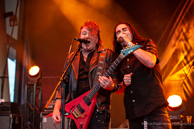 The day comes closer to an end and the best is yet to come. Gamma Ray plays their first show in Nordrhein Westfalen in four years and it is at Rock Hard Festival. Kai Hansen, Henjo Richter, Dirk Schlächter, Michael Ehré and Frank Beck, these are the protagonists of a Metal firework that closes Day 2. The Metal veterans don’t lose any time and start strong into their set. The joy of playing in front of a very well-filled Amphitheater is obvious right away and it is enthusiastic festival visitors that carries the band through the show. Gamma Ray is an institution in Metal. Songs like ‚Master of Confusion‘ and all the other hymns belong to the best Melodic Metal has still in the offer. Gamma Ray as a headliner, that’s a safe bet and a great way to end a windy and rainy day full of glorious Heavy Metal.
