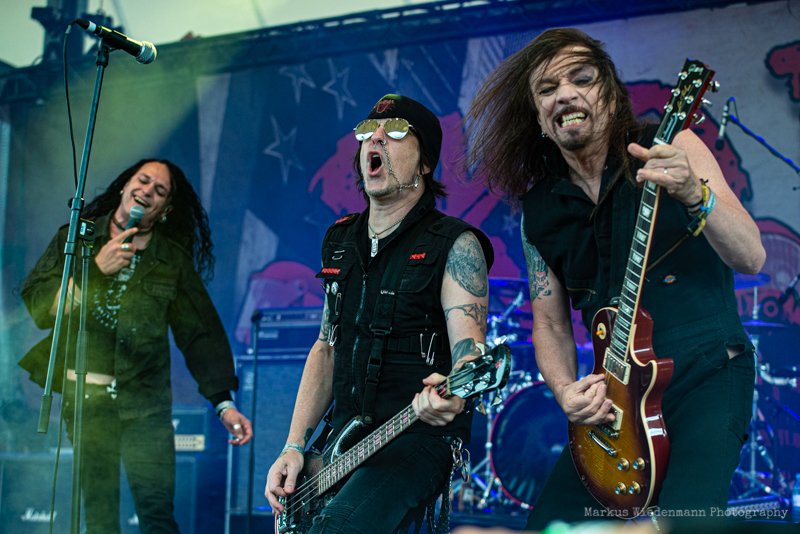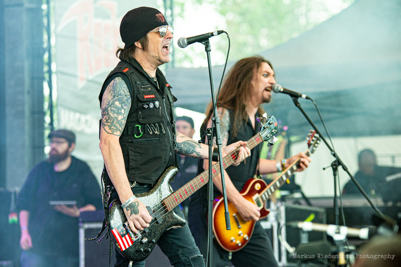 The start of hard rockers Skid Row is a bit later than expected. Some technical issues cause a 15 minutes delay, which isn’t the best thing at a festival. However, the problem is fixed after a bit of extra waiting time and the quintet starts furious into their set. Since a few years Skid Row is back with full force and the guys don’t change this approach at Rock Hard Festival. For the first time the Amphitheater is pretty packed and Skid Row does their part to make these 50 minutes to a great Rock party. Songs like ‚18 and Life‘ and ‚Monkey Business‘ are without any doubt classics and bring a lot of movement into the crowd. The Ramones cover of ‘Psycho Therapy’ is a fix part of a Skid Row set and fits perfectly. Fans are a big choir for some of the chorus parts and also a longer applause at the end showed the impact of this gig. Even the John Denver song ‘Country Road, played from tape after the set, was seen as a sing-along song for fans. Skid Row, the winner of the day.