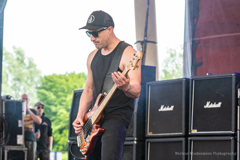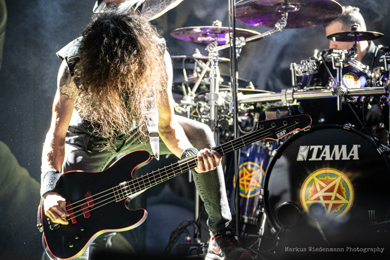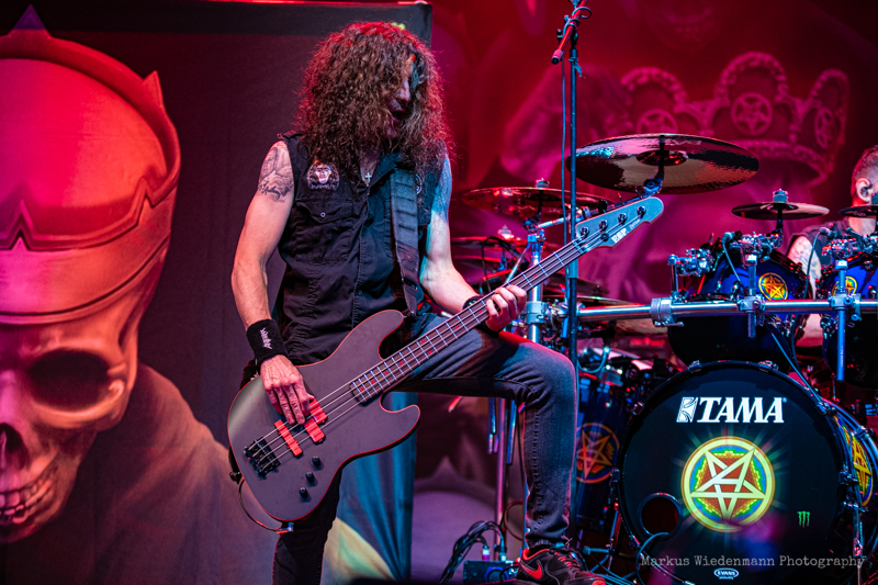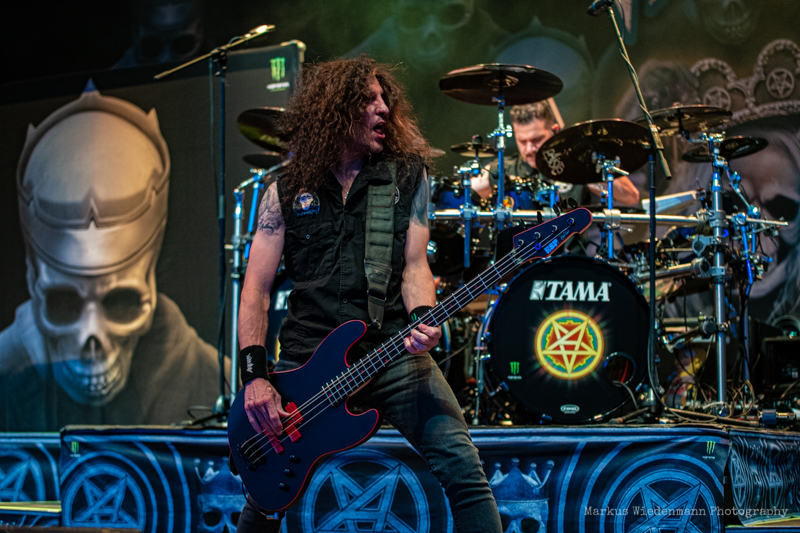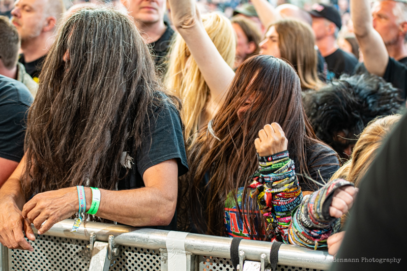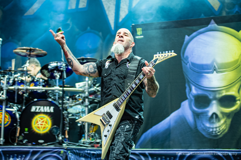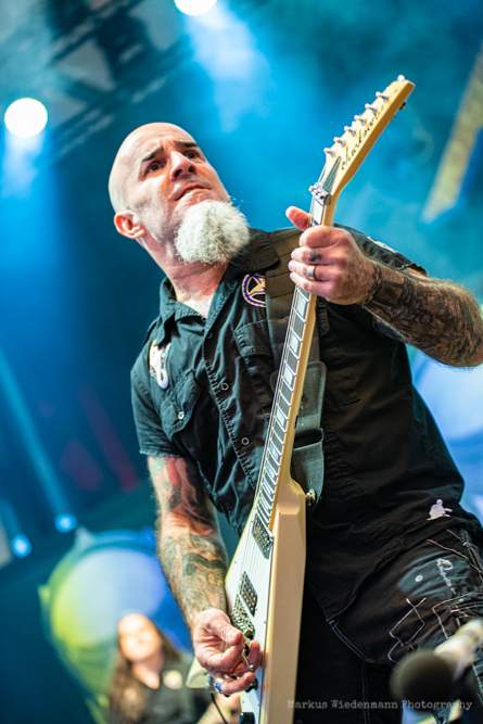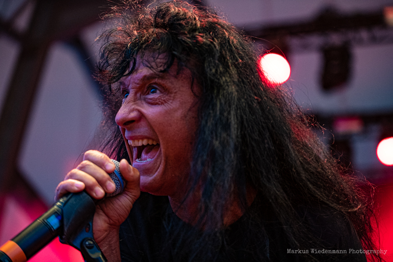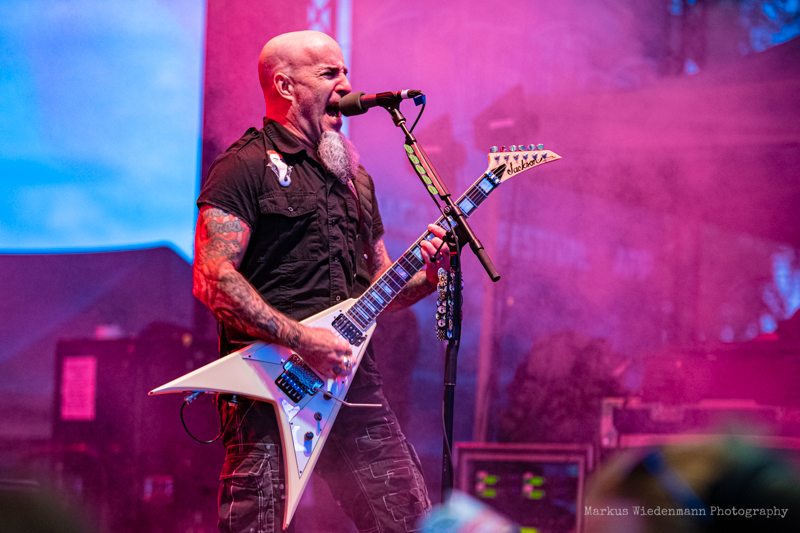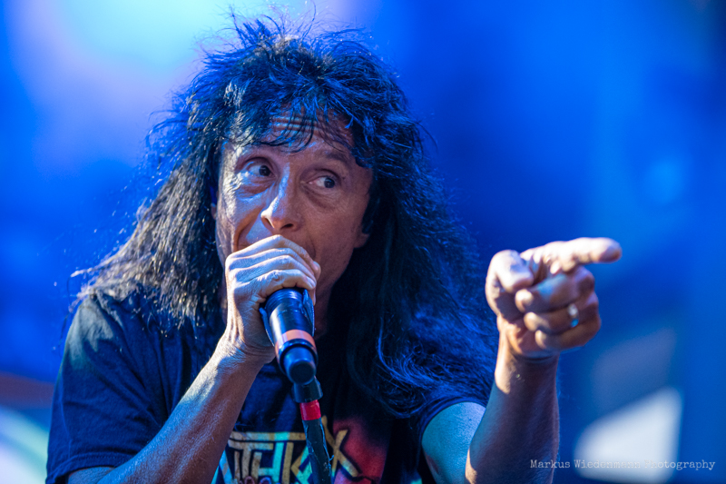 After such a show it is up to Anthrax to bring the festival closer to its finishing line, being the Grande Finale of the 2019 edition of Rock Hard Festival. The guys just started their current festival tour and at least frontman Joey Belladonna is still a bit jet-lagged, introducing ‚Be All, End All‘ as Speed Metal, which he immediately corrected into Thrash Metal. Anyhow, the show of the New York City mosh kings gets out of the boxes very well with ‚Caught in a Mosh‘. ‚Got the Time‘ is next, followed by ‚Madhouse‘. It‘s these songs that activate last energy reserves of fans at the end of a festival. Although some metalheads started their hometrip already, Anthrax wins over the remaining fans immediately with crowd surfing activities and solid mosh pit happening all over the place. The quintet plays an oldschool set tonight and that‘s what fans want to hear. The focus of the 90 minutes show was on ‚Spreading the Disease‘ and ‚Among the Living‘, both milestones in Thrash Metal. A few fans, wearing Indian hair dresses, are waiting for one song in specific, ‚Indians’. After a long day it is a smashing version of this smasher that ends a great 2019 edition of Rock Hard Festival and releases fans into the summerly darkness of Gelsenkirchen. With the last note fading away in the rounds of Amphitheater only one conclusion is relevant: Let’s do it again next year