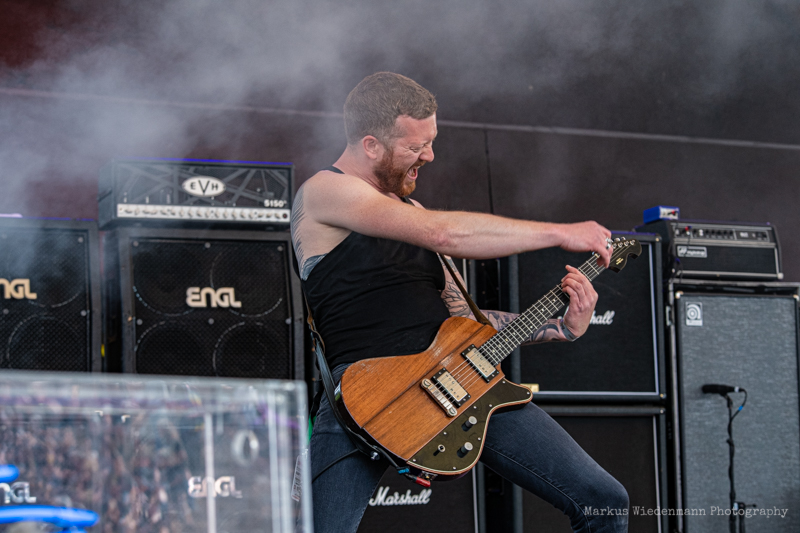 The show of the next band could become the header of ‘Münster, part two’. After Zodiak played already earlier today it is Long Distance Calling with their post-rock bringing a new genre to the table. Usually instrumental music is something made for smaller venues but Long Distance Calling rocks Gelsenkirchen and the 7.500 metalheads at Amphitheater. Contrary to the recent ‚Sounds and Seats‘-tour it‘s today the special festival atmosphere being the scenery for an hour of excellent Rock music. Loud guitars, an excellent groove and great sound make this hour to one of the highlights and it was loudly cheering fans that gave this set the vibe Long Distance Calling and their music deserves.