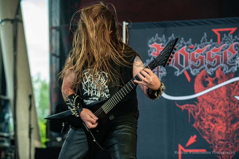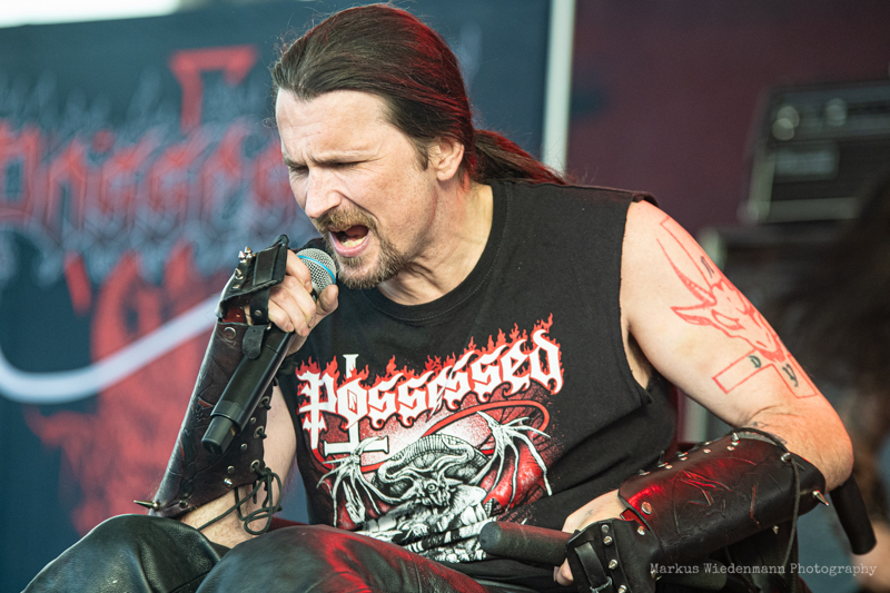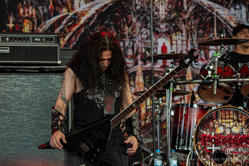 Already earlier this afternoon, when Possessed frontman Jeff Becerra did a round through the Amphitheater, it was obvious how many fans came out to see the band. Therefore it‘s not a too big surprise that the venue was pretty full when Possessed started their show. ‚No More Room in Hell‘, from the latest release, is the perfect opener and turns the venue into a madhouse. The energy level of both, fans and band, is extremely high from start to end and it‘s legendary songs like ‚Pentagram‘, ‚Tribulation‘ and the masterpiece ‚Pentagram‘, that makes fans go wild. Frontman and founding member Jeff Becerra is in good voice. You could get the idea that all his energy goes into his vocals which makes smashers like ‘Death Metal’ even heavier than on LP/CD. Possessed defined a whole new genre and although they have been absent for many years (dramatic reasons are known I guess), fans didn’t forget this band that is at least as strong today as they were in the ‘80s. This show was a real highlight of the entire festival.