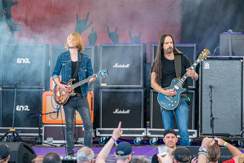 Magnum is always a safe bet. The band is that long in business that you know pretty well what you can expected – great Hard Rock songs with excellent melodies and a good vibe. Magnum is a stable factor in any line-up. Fans are dancing in front of the stage during the entire show, clap along and are a choir for the chorus parts. Magnum has a strong fan base in Germany, supporters that appreciate songs like ‚Vigilante‘, ‚How Far Jerusalem‘ and ‚All England‘s Eyes‘ a lot. These older Melodic Rock hymns go together extremely well with newer material like ‚Crazy Old Mothers‘ and it‘s one of the masterpieces that closes the set. ‚Sacred Hour‘ ends a professional show of a band that still belongs to the Premiere League of Rock.