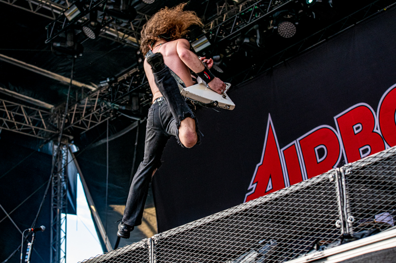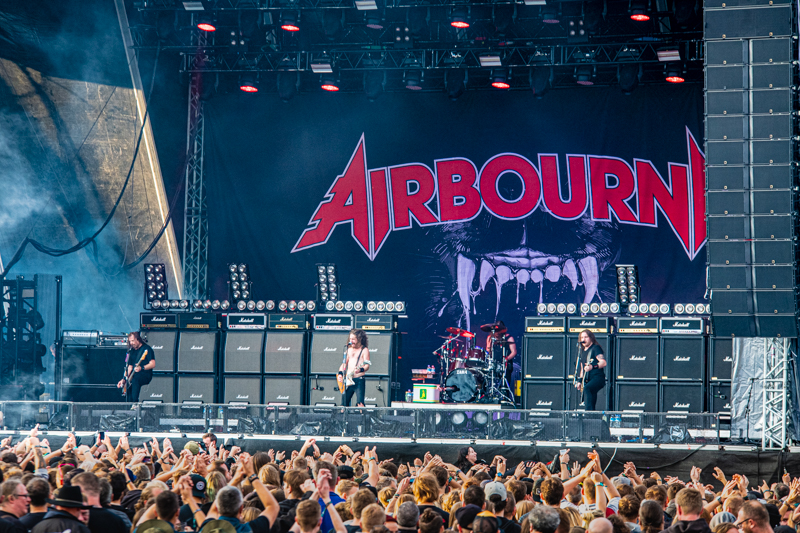 We’re getting closer to the grande final, but before In Flames round off Elbriot 2019 it’s up to Australian Hard Rock maniacs Airbourne to ignite a Rock’n’Roll fireworks. Airbourne, another ‘homecomer’ when it comes to Elbriot, doesn’t play Hard Rock, they live it everyday. These four guys from Down Under must have Rock’n’Roll in their veins and that’s what makes them to such a great (live) band. Regardless if in small venue or a big festival, Airbourne wins over the crowd in a second and it’s certainly not a surprise that songs like ‘Too Much, Too Young, Too Fast’ leads to fan chants. ‘Ready to Rock’, that’s more than solely a song. Airbourne and their fans, that’s one and even a big festival stage can’t stop this lasting connection. ‘Ready to Rock’, that”s the overarching banner of Airbourne tonight, something that’s deeply included in the DNA of the quartet and Elbriot 2019 is another moment to unleash the ‘Rock’n’Roll beast.