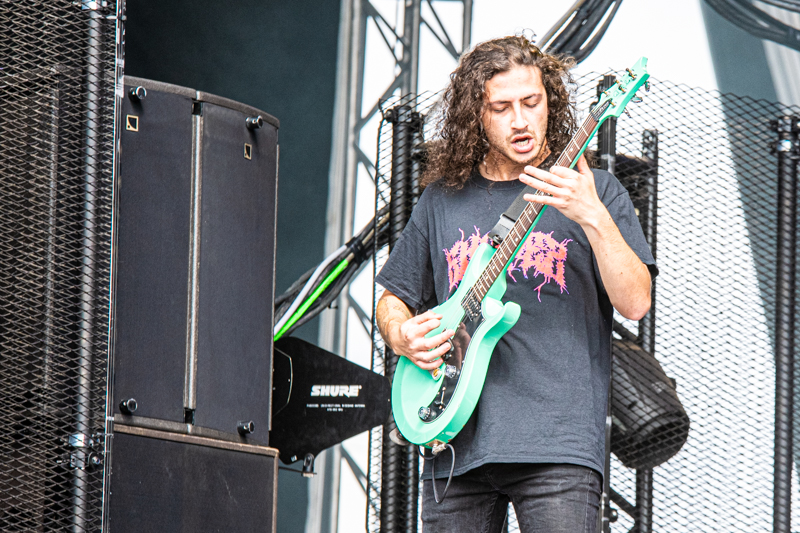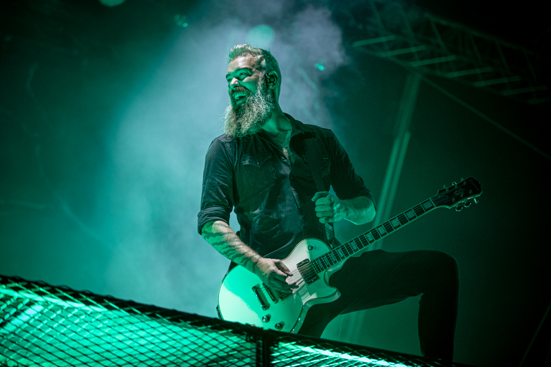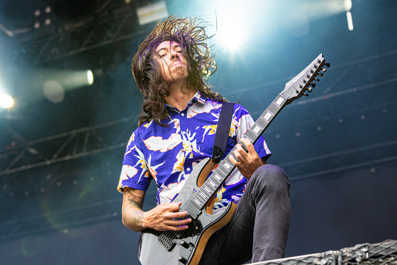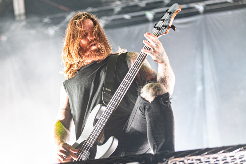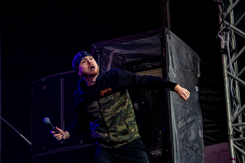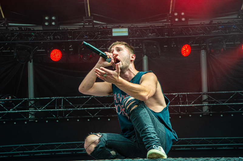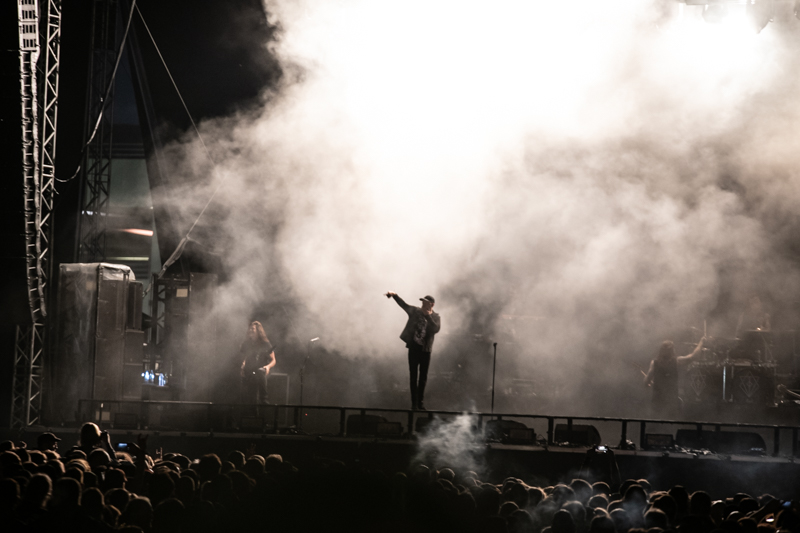 Some rising starts were on stage already earlier today and another one is next on the running order, Of Mice & Men. The band that started ten years ago in California build-up a rock solid fanbase in no time. After having enjoyed the colourful Metal party with Dragonforce it’s Of Mice & Men’s that brings aggressive Metalcore to the table (although Phil Manansalafits’ shirt fits more the Dragonforce party) . Of Mice & Men was already part of the line-up in 2014, but had to cancel due to sickness. Five years later things turn out well and the guys deliver a smashing show at Elbriot with their frontman Aaron Pauley being the centrepiece. Gestures, mimic and vocals are one and it’s the aggressive stage acting that makes this gig to an intense one. Of Mice & men are a well-chosen act for this festival and lay down Grossmarkt into ashes.