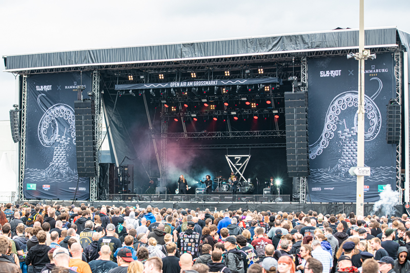 Next on the running order is Zeal & Ardor. The band, being the brainchild of singer/guitarist Manuel Gagneux, is another rising star. After a modern and metalcore focussed festival start, Zeal & Ardor breaks the pattern. Dressed in black the band and staffed with three singers, the sextett brings a fusion of Gospel and Black Metal to the Hansestadt in Germany’s North. Zeal & Ardor is for sure an enrichment for Heavy Metal and their show at Elbriot impresses. However, it feels like Zeal &Ardor’s music works better in a smaller club venue with their music spreading intensity much more than at a big festival.