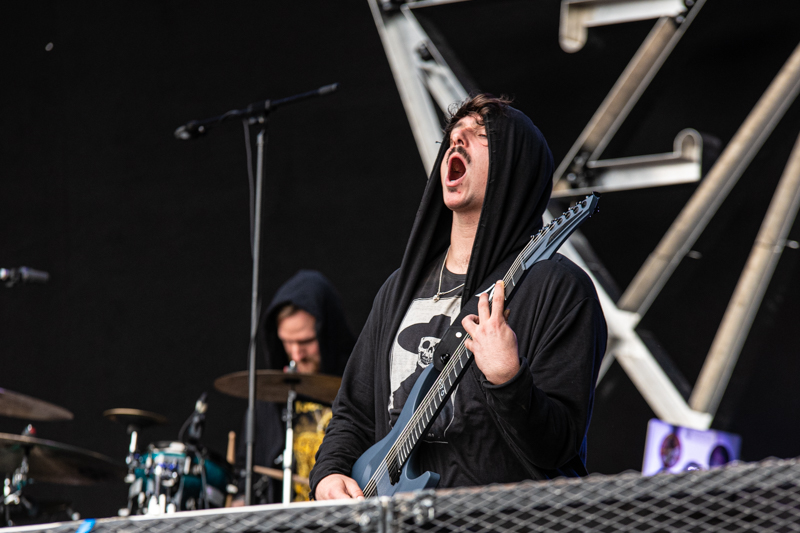With a slightly adjusted time planning Sh>pes are the first act that enters the stage at noon. It’s not the easiest thing for band to be the first one on a festival line-up. The quintet, hailing from Birmingham, UK, gives their best, playing in front of quite some ‘early bird fans’. Sh>pes is fronted by Bruce Dickinson’s son Griffin Dickinson and being the ‘son of’ is blessing and curse in one. It helps to give the band some spotlight, but it’s up to the guys to show their own band identity. Sh>pes does this very well today, with the mix of melodies, Metalcore and Alternative Metal that brings some first riffs to the Grossmarkt in Hamburg and brings everybody into the right mood for the rest of the day.