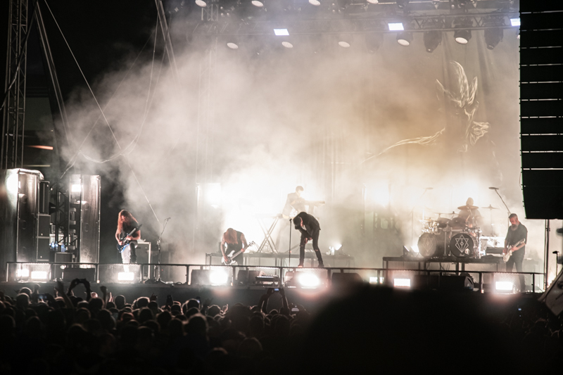 Some rising starts were on stage already earlier today and another one is next on the running order, Of Mice & Men. The band that started ten years ago in California build-up a rock solid fanbase in no time. After having enjoyed the colourful Metal party with Dragonforce it’s Of Mice & Men’s that brings aggressive Metalcore to the table (although Phil Manansalafits’ shirt fits more the Dragonforce party) . Of Mice & Men was already part of the line-up in 2014, but had to cancel due to sickness. Five years later things turn out well and the guys deliver a smashing show at Elbriot with their frontman Aaron Pauley being the centrepiece. Gestures, mimic and vocals are one and it’s the aggressive stage acting that makes this gig to an intense one. Of Mice & men are a well-chosen act for this festival and lay down Grossmarkt into ashes.