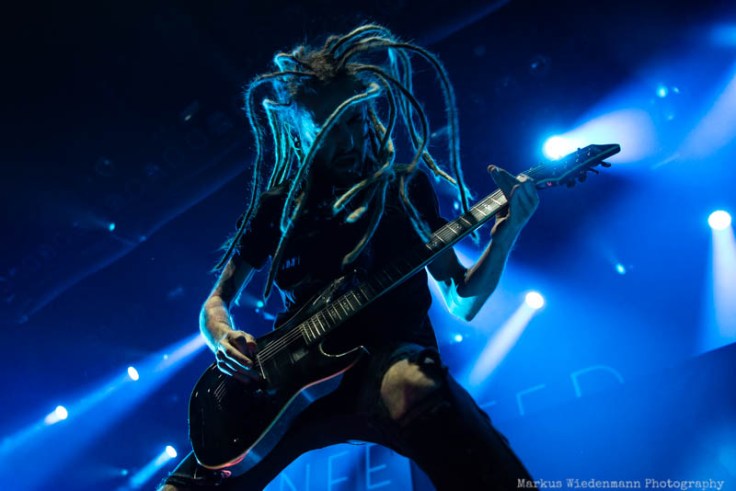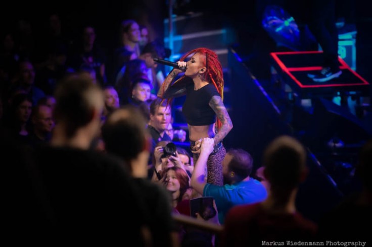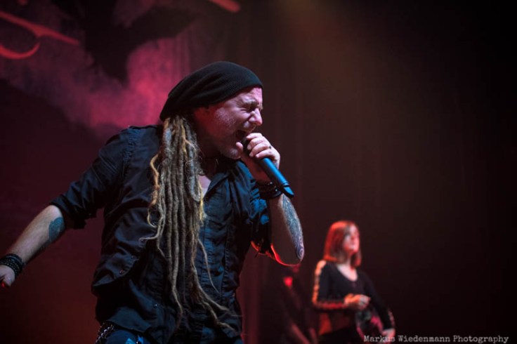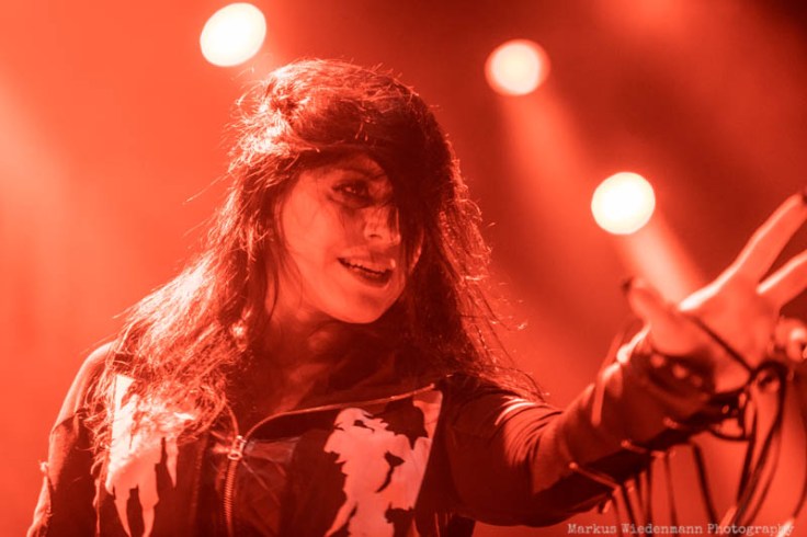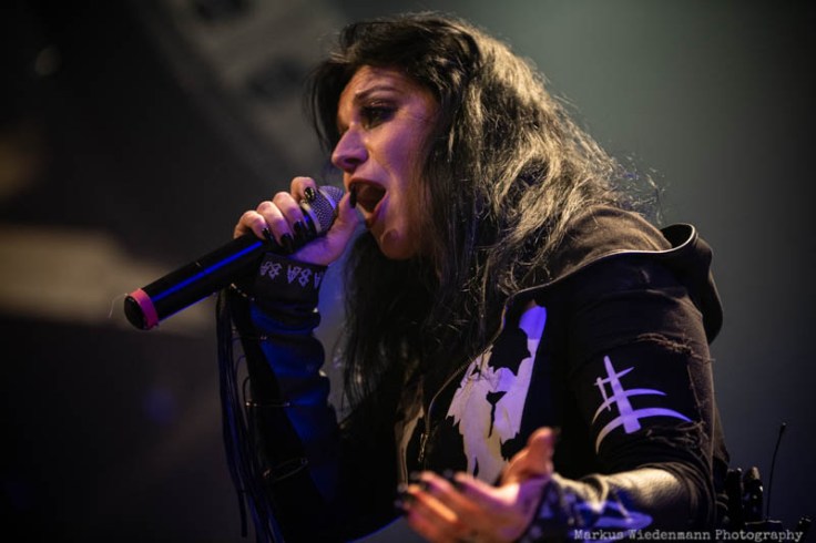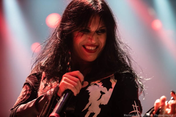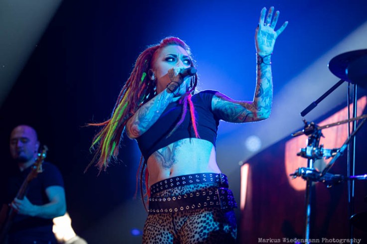 Nu Metal(core) is the starting point tonight and it’s provided by Moldavian metallers of Infected Rain. The quintet starts with ‚Mold‘ pretty powerful in their 35 minutes set. What increases the energetic lead-off set is the fact of guitarist Seriy being back, doubling the guitar power tonight. Constantly motivated by singer Lena Scissorhand the crowd wakes up rather quickly with some first clapping hands bringing a good vibe to Ronda, the second biggest room at TivoliVredenburg. Last but not least the first circle pit starts with ‘Sweet, Sweet Lies’, smashed into room by the Moldavian powerhouse. With Lena Scissorhand singing/shouting the last part of the song from the photopit, right in front of fans, a well-done opening set ends and increases appetite for the coming bands.