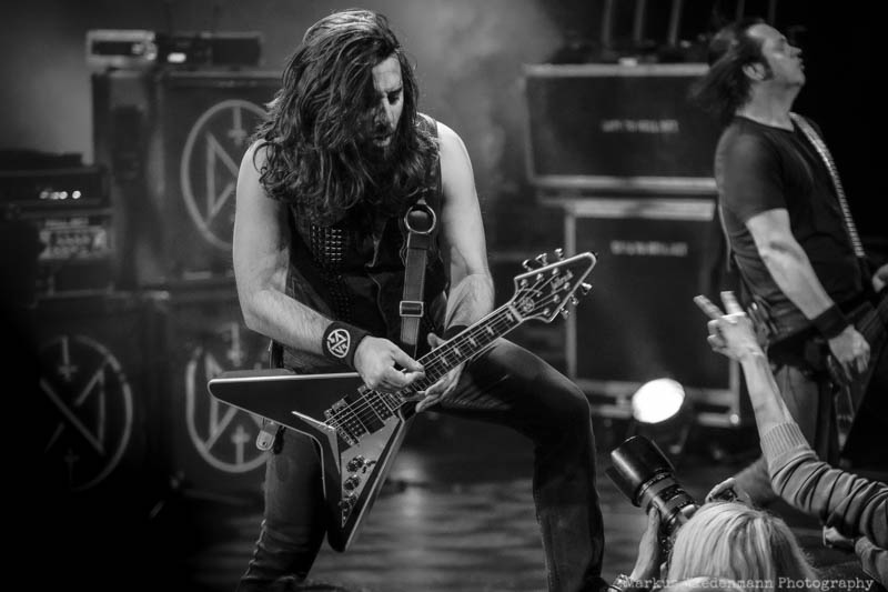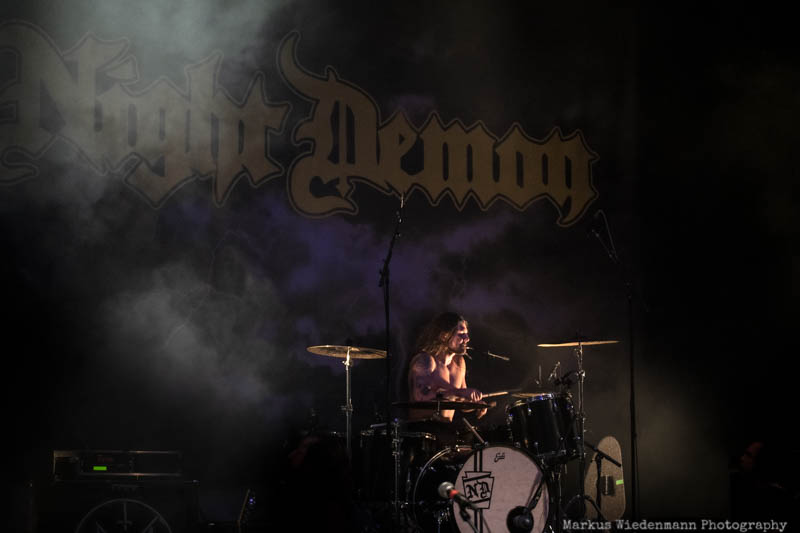 Next to Sacred Reich it is no less than Night Demon being on stage too. Jarvis Leatherby and band mates are a whirlwind as soon as they enter the stage. There is no warm-up or time to prepare. The first riffs of ‘Night Demon’ are like a hit into your face. Night Demon on stage, that’s like driving a speedster without breaks. Therefore positive reactions aren’t be long in coming. The trio from Ventura, California turns the venue into a madhouse and regardless which song they play and from which record those are taken from, the front row goes crazy. After 50 minutes things come to an end with a surprise. The usually closer ‘Night Demon’ went to pool position and now we know why. Night Demon plays an ultra-fast version of Golden Earrings ‘Radar Lover’ and no doubt, this was much appreciated.