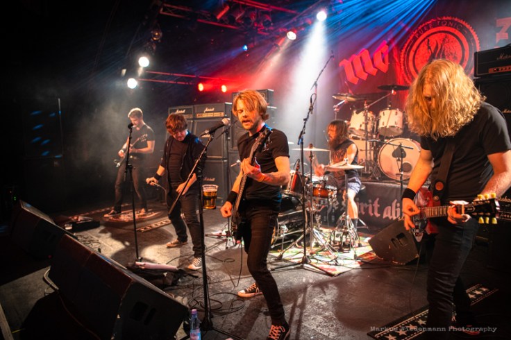 I mentioned Pure Tonic already. No only that Motörizer returns to ‘Lemmyversary’, also the opening act is one of the party again in 2019. The five-piece from Northern Germany uses the opportunity to perform in front of an enthusiastic crowd in a pretty packed Markthalle. What impresses in the 45 minutes set is the energy the guys envince. According to bassist Dennis, 2019 was a great year for the band with a tour and a new CD called ‘Bliss n’Bleakness’. Pure Tonic transfers these good things into a show that ends with a sonic blast entitled ‘Hell Yeah!’, reminding me of Mammoth Mammoth’s great ‘Hell’s Likely’. The quintet for sure was a good choice for opening ‘Lemmyversary Vol.4’, not only because of their music but also due to the spirit these guys present on stage.