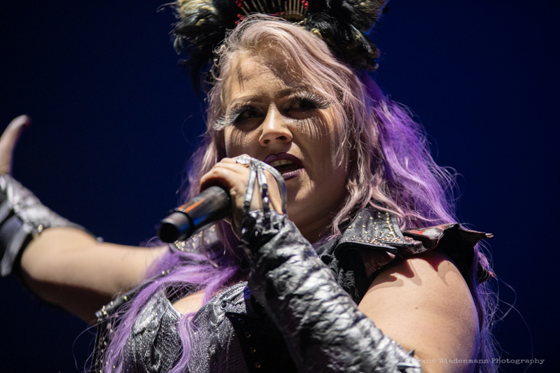 The moment Noora Louhomi and bandmates enter the stage the energy level at Alsdorfer Sporthalle faces a next high. It‘s a mission impossible to not get infected by the power of Battle Beast singer Louhomi. Not only the she has an excellent voice, which she knows to use in perfect fashion, the ‘Metal queen’ is also all over the place/stage. She is like a power-pack that spreads its entire energy in 45 minutes. Battle Beast rocks Hamburg tonight, that is for sure.