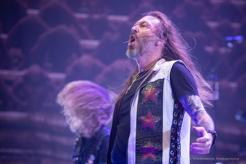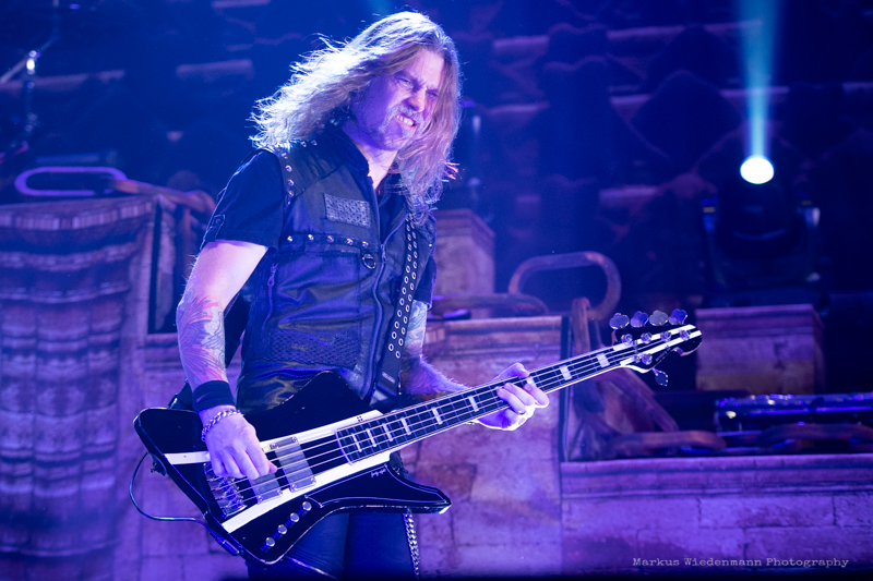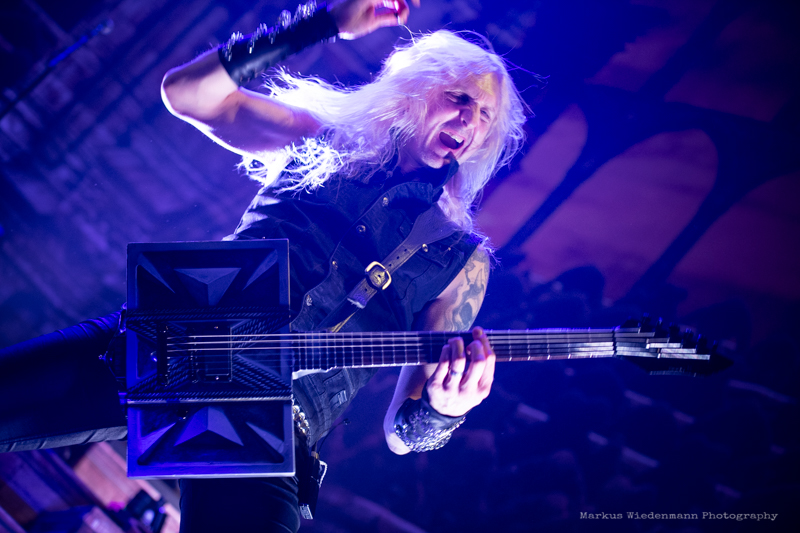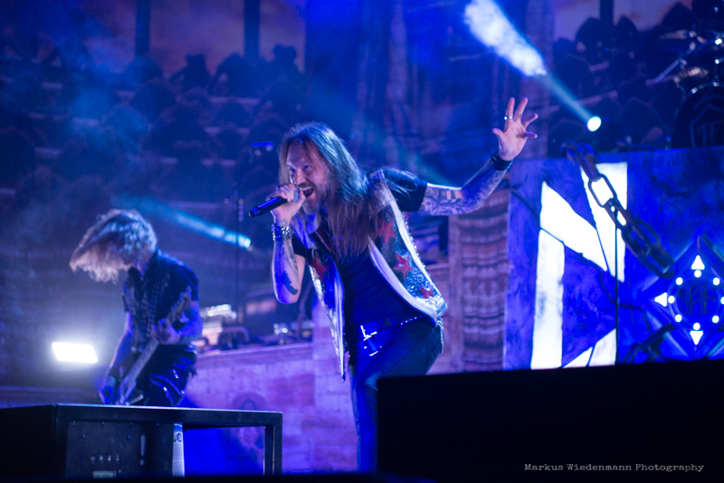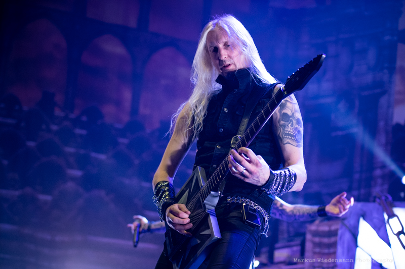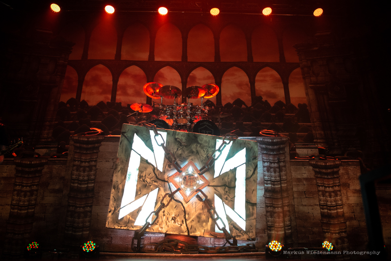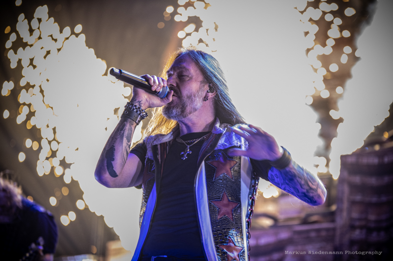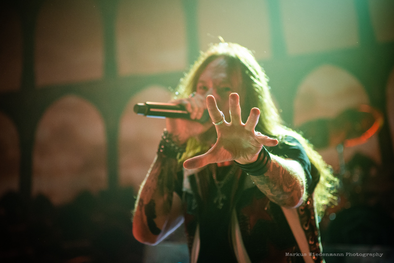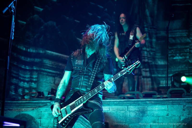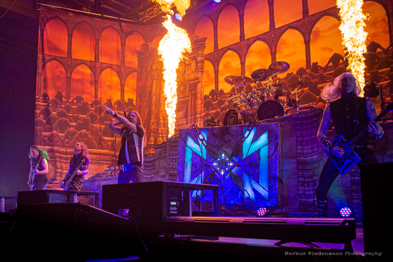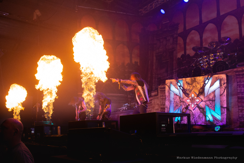 The guys from Gothenburg start with ‘Never Forgive, Never Forget’ into their set. Not only that first flames bring some heat into the room, also the firing riffs of the ‘Dominion’-smasher are much appreciated by fans. Hammerfall has a strong fanbase in Germany and therefor it’s not surprising that the five Swedes face an enthusiastic crowd right away.