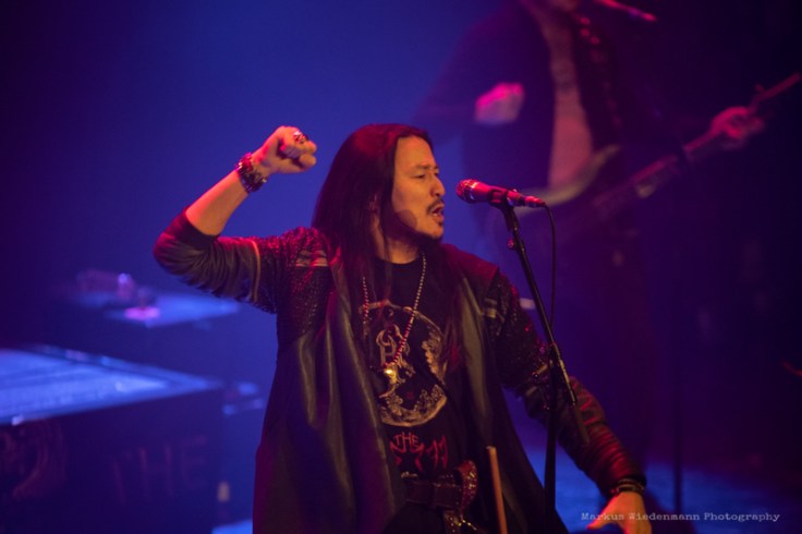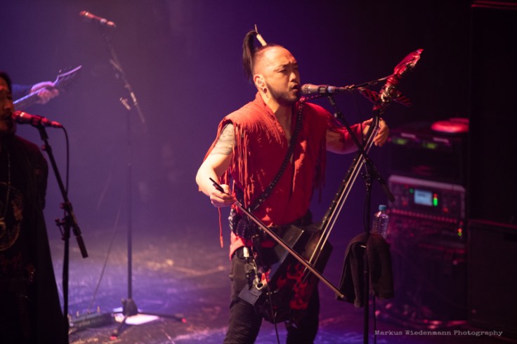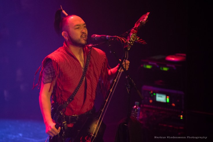 With having released an album recently, the band is on the road since a few months, including a stop at Melkweg in Amsterdam. A sold-out concert shows clearly the curiosity about band and their music. As on the album also the live show is different from what you’re used to as a metalhead, still it’s a great crossover experience that stretches the borders of Heavy Metal. And instead of having only a crowd dressed in black leather and denim there was a bigger Mongolian supports group watching the show too, guys that were really excited, while taking a lot of selfies and group photos.