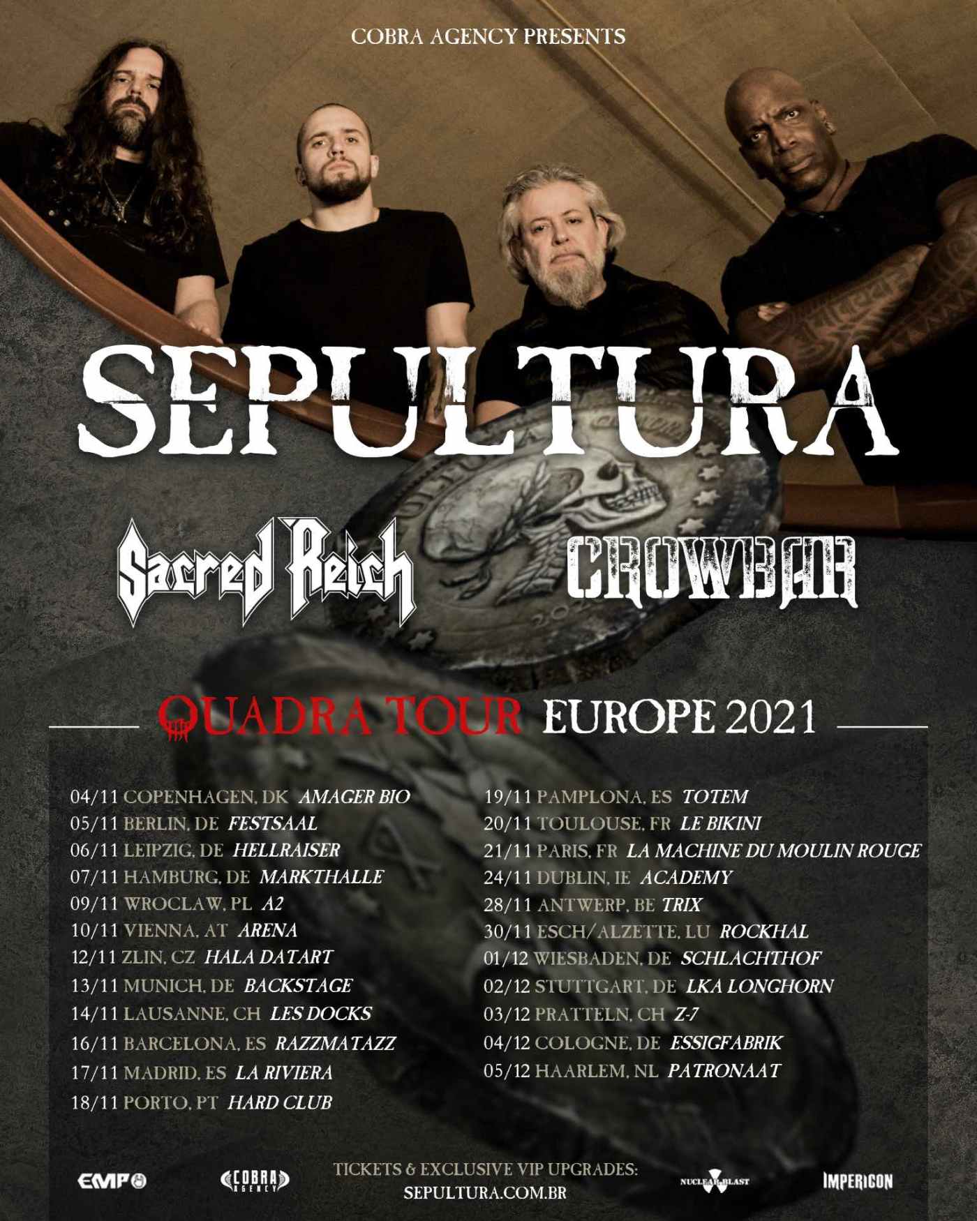 New SEPULTURA tour dates, support: SACRED REICH & CROWBAR