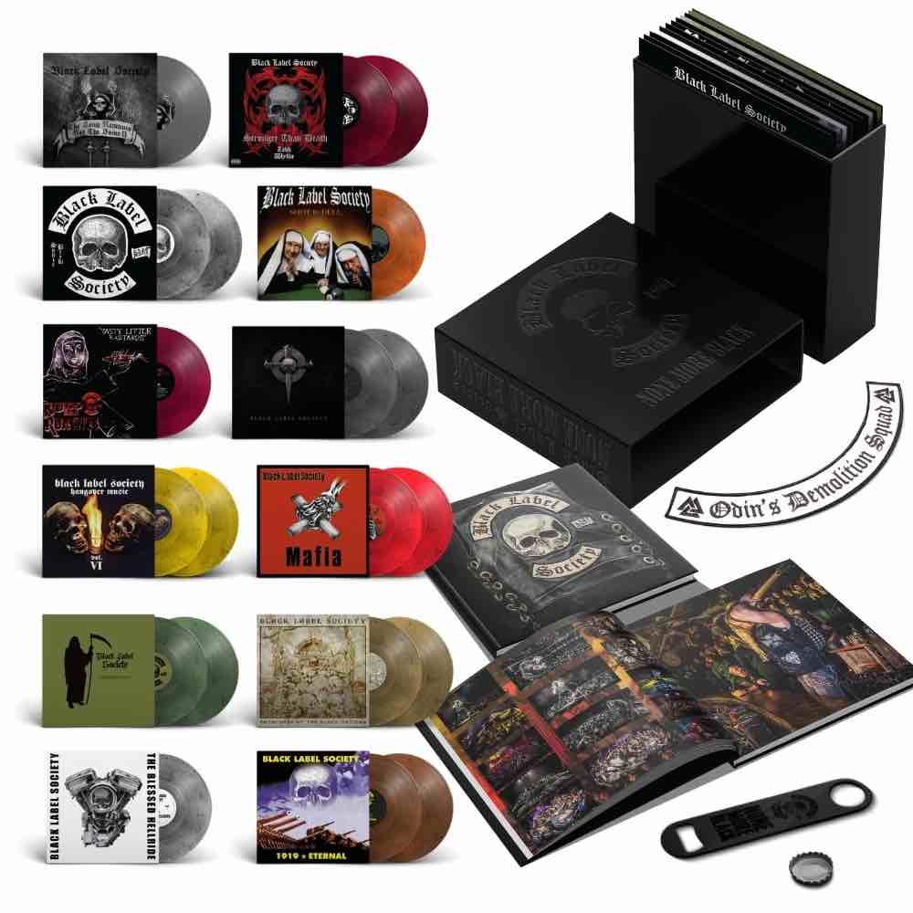 Zakk Wylde and the Black Label Society released a box set today, that includes all twelve studio recordings on color vinyl. Also included is a 32 pages photo book, patch and bottle opener. all wrapped in into black on black collection box.