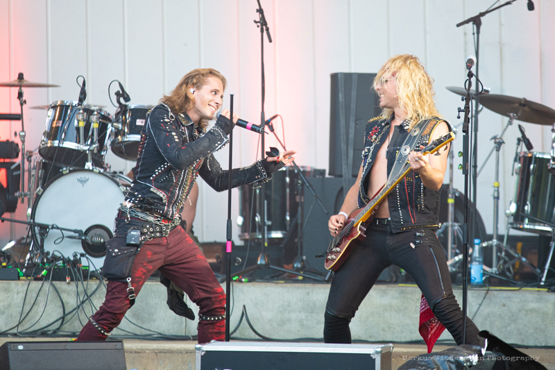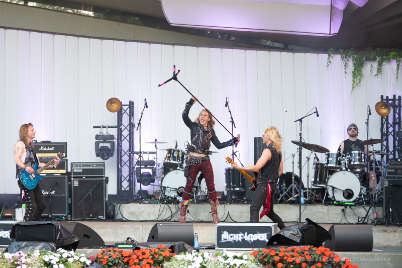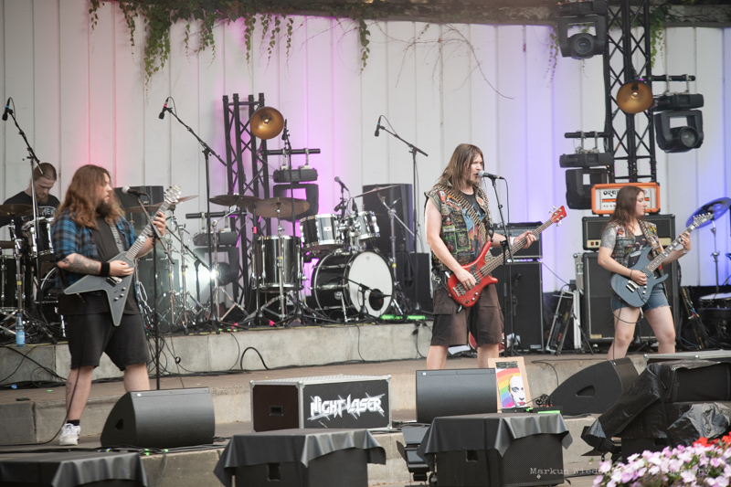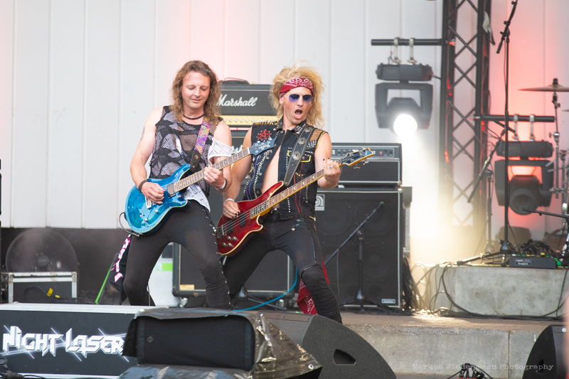 Within five minutes the stage is set for the next act, Night Laser. From thrash metal to sleaze metal in five minutes isn’t something you get offered a lot. Colors and melodies are the state of the art for the next 25 minutes and Night Laser is fast. It’s obvious that everybody enjoys live music and having fun the credo of the night. Night Laser provides entertainment with riffs, melody, make-up, and colorful clouds of smoke. These guys are so excited that they even went faster through their set as planned and finish a few minutes earlier than scheduled.