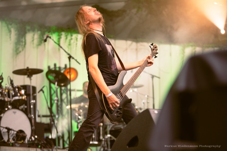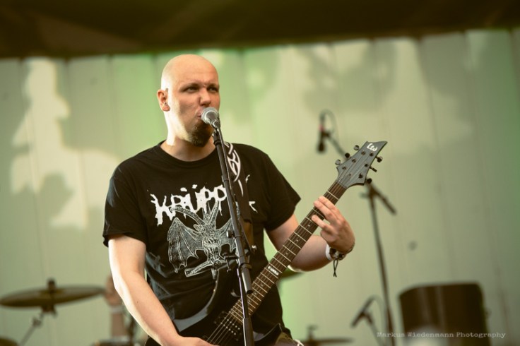 What comes next is the opposite of what Night Laser stands for. Ophis is Hamburg’s doom metal institution. Frontman Philipp Kruppa started the band as a side project in 2001 and it took until 2007 to unleash the debut ‘Stream of Misery’. Ophis, that is massive doom metal that more than once blends into funeral doom. A slower pace, some well-accentuated breaks, deep growls, and a substantial rhythm section jar the bandstand at Planten un Blomen. One can get the impression that many fans came to see Ophis and the appetizer for the upcoming album ‘Spew Forth Odium’ is an extra treat them. These four guys challenge the foundation of Planten un Blomen with their immense riff power and fortunately the base can handle such an infernal set since with Endseeker, the next act is already waiting in line.