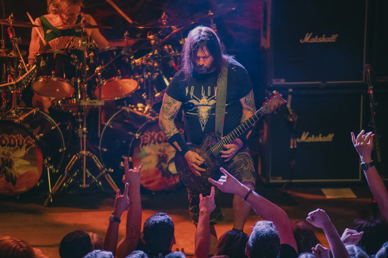 However, this evening didn’t go completely smoothly either, for which the band can’t be blamed. First of all, guitarist Lee Altus had to stay in the USA for personal reasons. Replacing someone like Altus is no easy task, but Exodus handled it with flying colors. The band was able to get an equal replacement for the tour in The Black Dalhia Murder guitar wizard Brandon Ellis and Ellis does a great job.