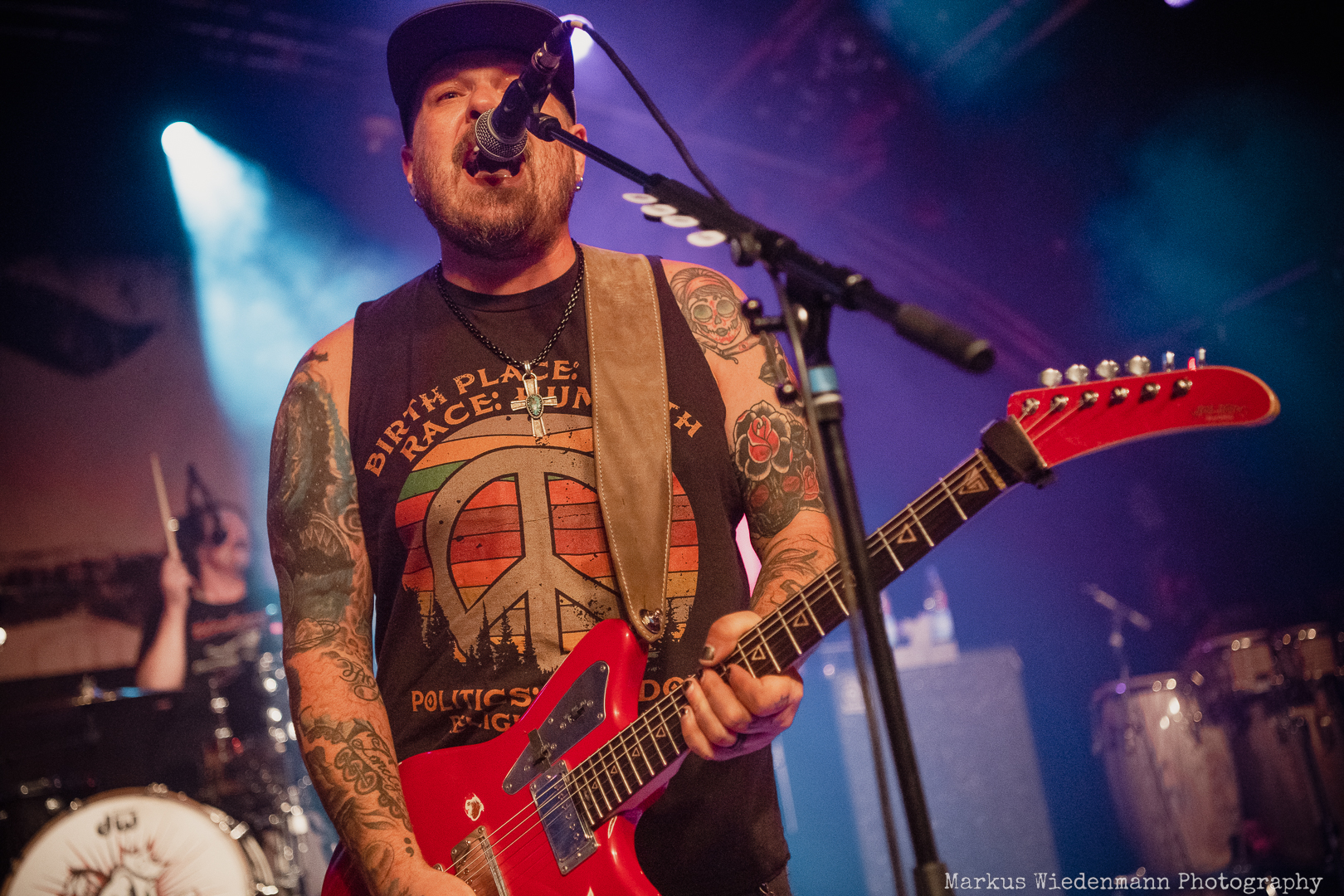 Show start is at 20:00 sharp when the five guys from Rome, GA take the stage to bring 40 minutes of next generation southern rock to the people. Even though the Markthalle is not completely sold out, it is noticeable that many fans of energetic rock music already left the beer stands and found their way into the hall during the opening act.