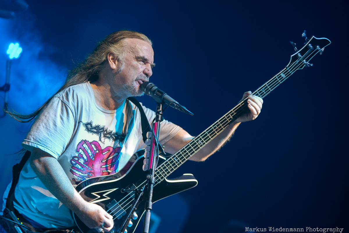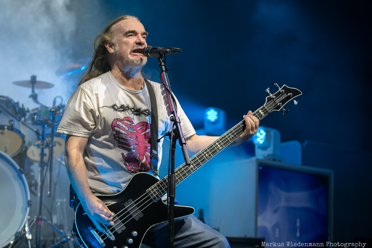 Carcass, that is also tonight brutal death metal that is presented with love to detail and yet in power and brutality can hardly be surpassed. Jeff Walker, with his incomparable bass playing and his very raucous voice is not only an expressive frontman but also has quite entertainer qualities; not least when he pulls out his lighter and animates the fans to do the same. In contrast, Bill Steer is almost absorbed in his guitar playing and elicits awesome riffs from his instrument, which define the sound of Cacrass. The focus of Carcass is fully on the music itself and the music knows how to impress. In front of the stage it is full of fans enjoying a setlist that builds on the last output ‘Torn Arteries’ as well as the hits of the legendary ‘Heartwork’ album. When the first sounds of ‘Heartwork’ start there is no stopping and the venue is absolutely prepared for more metal to come.