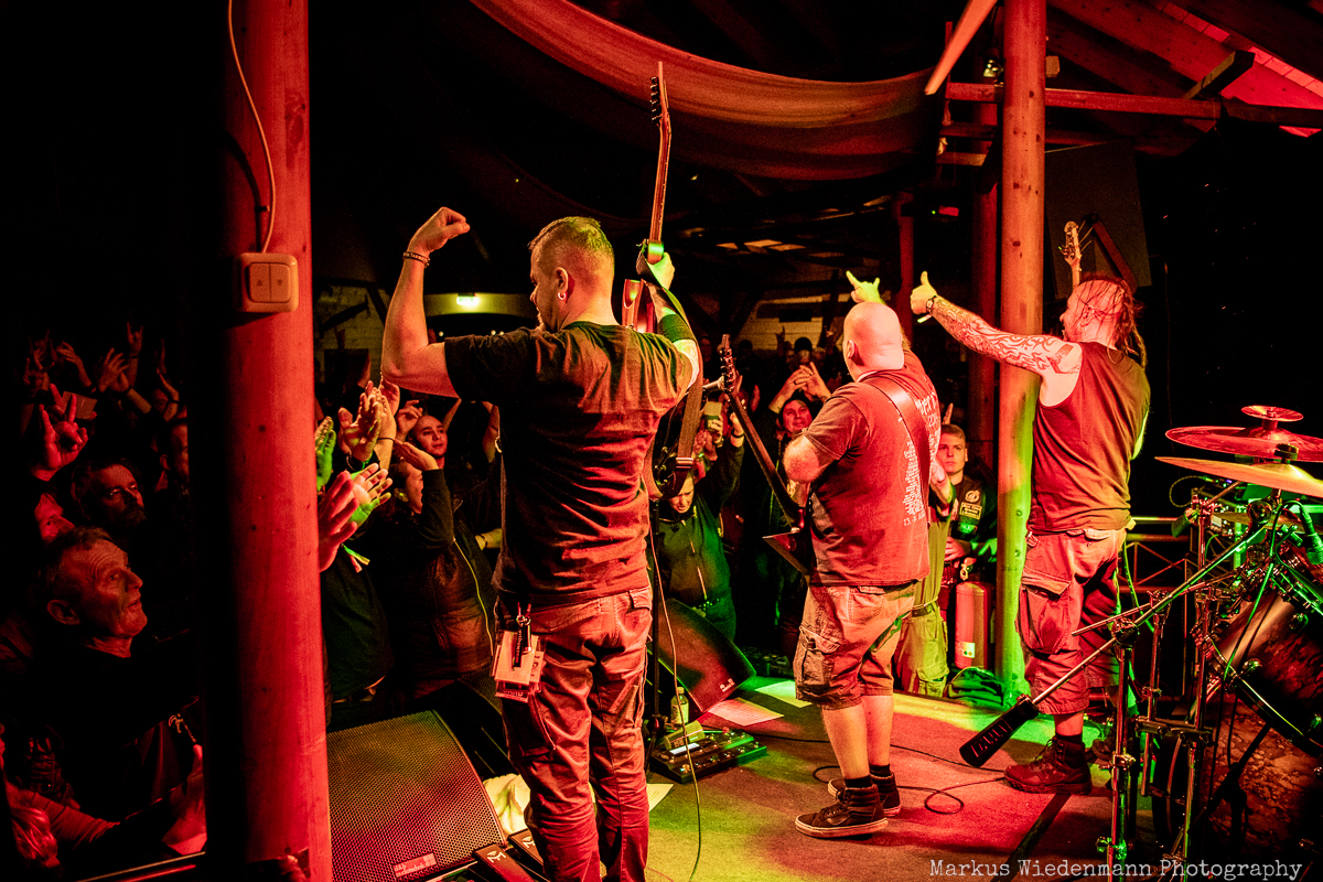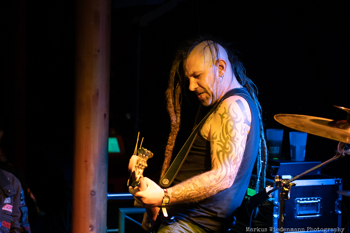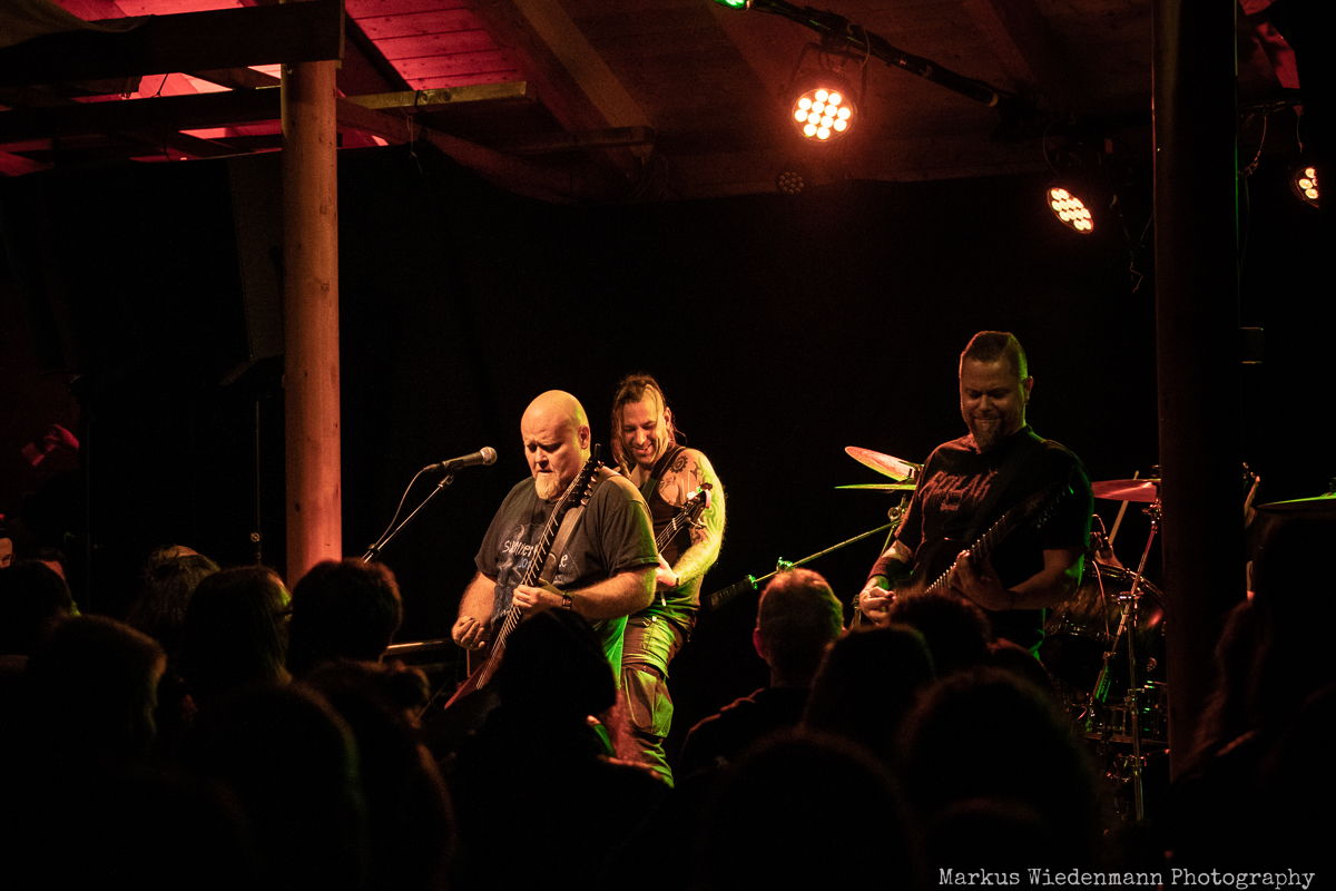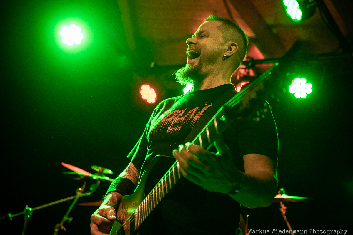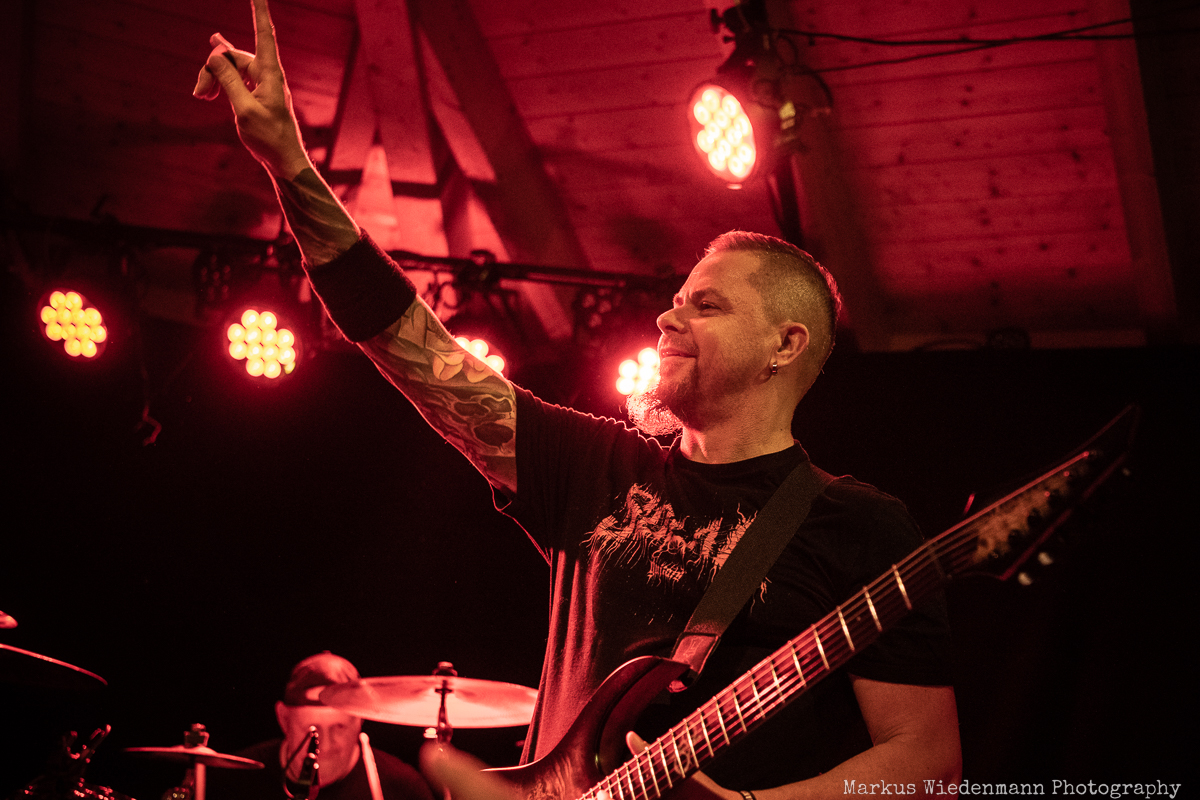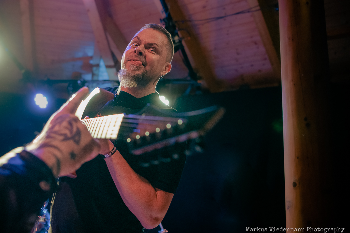 Undertow barely fit on the extremely small stage, but that doesn’t do any harm to the show. The guys have packed a total of 11 songs on the setlist this time and it all starts with ‘File Under: Unexpected’ from the 2010 album ‘Don’t Pray to the Ashes’. The choice of the song turns out to be very good and directly creates a stellar vibe at Riff Alm. This spirit gets even stronger with the furious ‘On Fire’. Within two songs, band and fans are an enthusiastic unit. No matter if the new songs like ‘Call of the Sin’ or the old crowd-pleasers like ‘Crawler’ blast out of the speakers, here a metal feast is solidly celebrated and enjoyed.