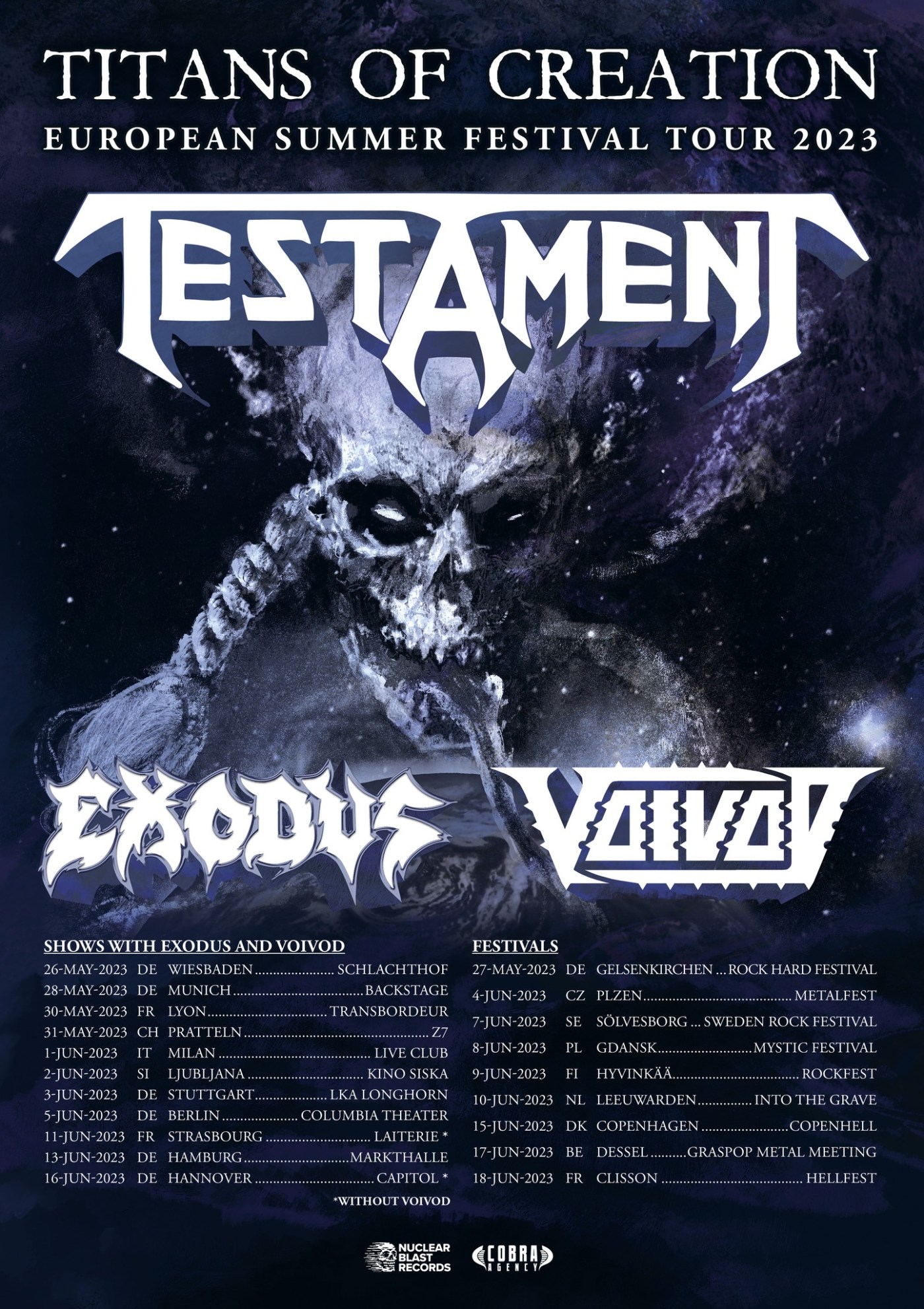Bay Area thrash metal giants, Testament and Exodus, have announced that they will be teaming up for a 2023 European tour in May and June. In addition to some of the biggest and most renowned European open air festivals like Hellfest, Graspop, Copenhell, Sweden Rock, Metalfest, Mystic and Rock Hard Festival, the bands will also be playing a bunch of sweaty and intense club shows, in a few cities that they had to leave out last year.