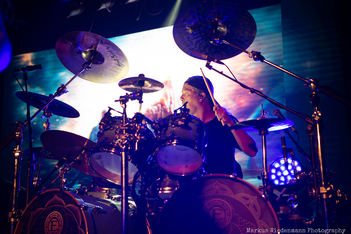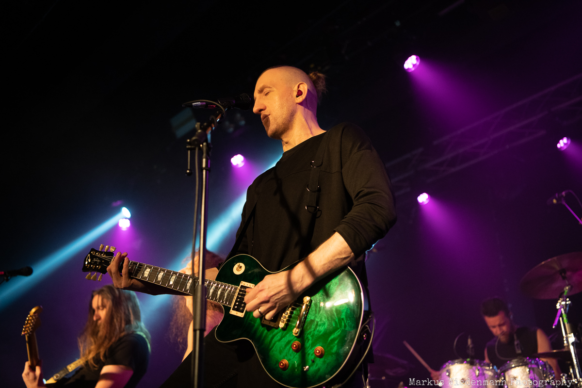 Doors opened at 18:00 which is rather early, and it is 20 minutes later, when Wheel enter the stage. Due to the long queue and because of the short time span between admission and show start, Wheel begin in front of a relatively empty hall. The Anglo Finnish progressive metal force released pretty good records of which the ‘Rumination’-EP is the latest to date. Unfortunately, Wheel have not only to deal with a slowly filling venue but also don’t get the best sound tonight. And with a rather short playing time of 25 minutes the band doesn’t have a lot of time to show their potential entirely. Still there are a few fans in the front row that give Wheel a warm applause which the band for sure deserved.