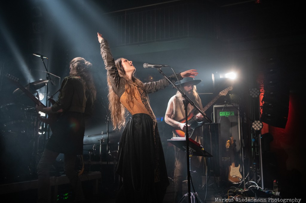 The first act is Kalandra. The band comes from Oslo, Norway and plays a mixture of ethereal rock, which also includes heavier elements and is spiced with a sprinkling of nordic folk. The mix is quite interesting, as it reminds us of the latest releases of Myrkyr, at least as far as the basic approach of the four Norwegians is concerned. Musically sophisticated, the band matches the headliner in a way, even if both don’t work on exactly the same musical genre. After 30 minutes, Kalandra are bid farewell with due applause and make the stage available for the second support act of this evening.
