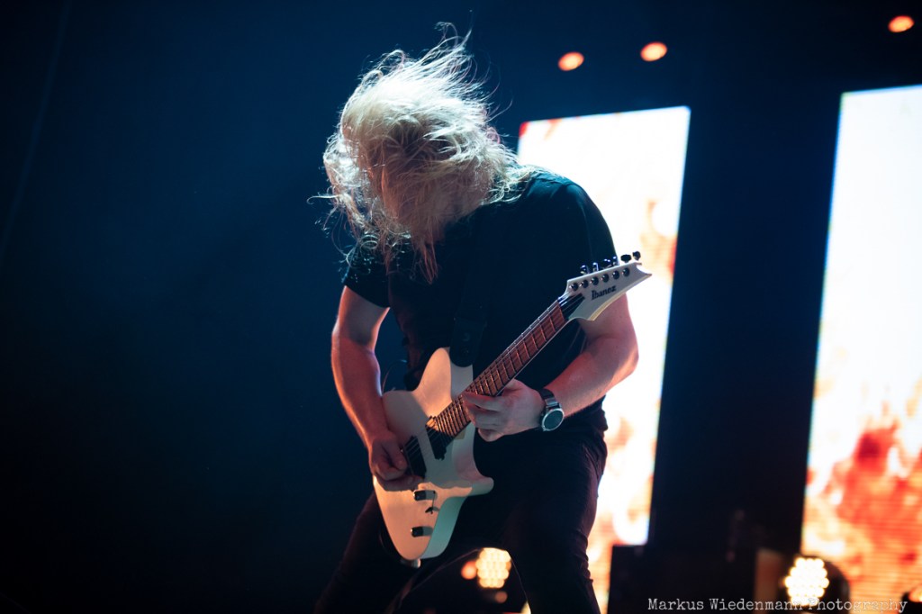 With Trivium, as usual, there is not only good music, but also an entertaining show on the agenda. Matt Heafy shows all his entertainer talent and also animates the audience with his announcements, often in German, gestures and facial expressions. And more than once we hear him saying “You’re fucking wunderbar”.