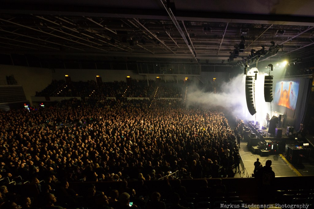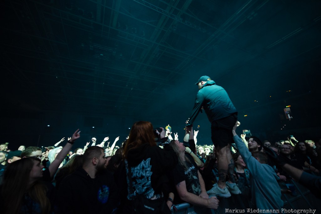 With more than 6,000 fans, the Sporthalle is almost sold out and thus the biggest show on the current tour. But does that also apply to the atmosphere? Of course. Animated by Bischoff the whole place gets into action, no matter if in front of the stage or on the stands. A mega circle pit develops that embraces almost the whole hall and takes its turn behind the mixing desk.