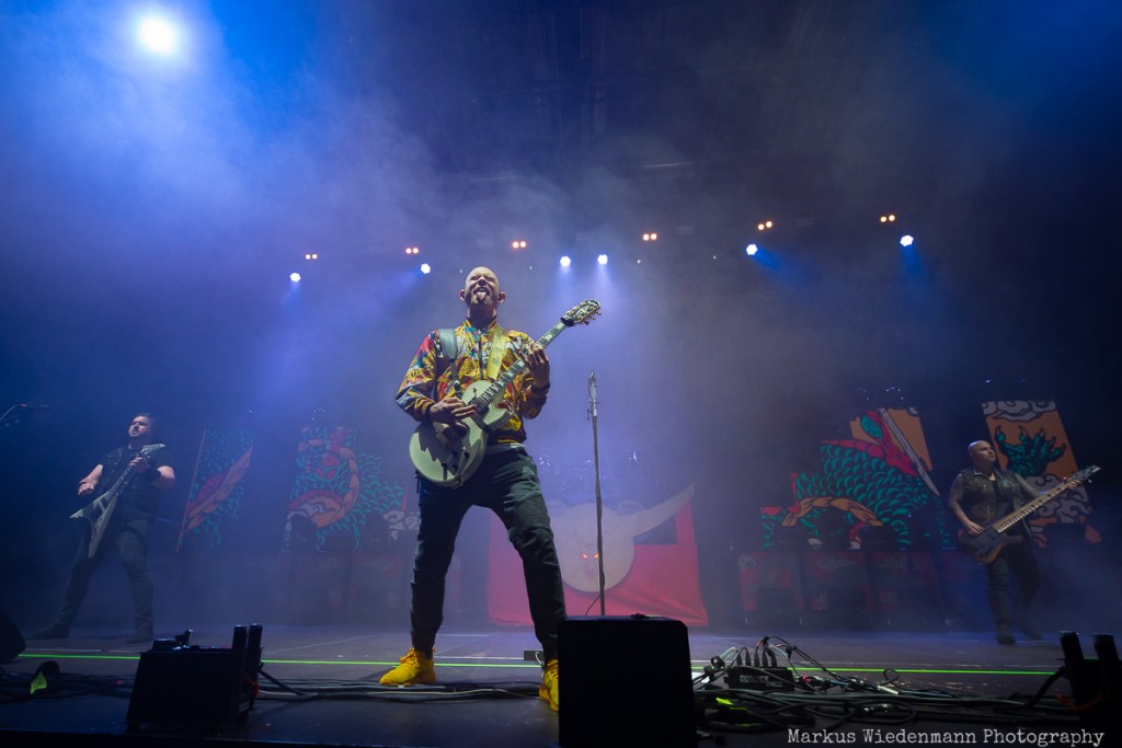 Slowly we approach the climax of the evening. Heaven Shall Burn are about to start and the curtain, covering the stage, adds to the tension. At 21:45 sharp the curtain falls, accompanied by a loud blast from the confetti cannon. What follows are almost 1.5 hours of finest metalcore. Heaven Shall Burn leave nothing to chance and start their set with full force. As with Trivium, the security in the pit has to do their best to handle all the crowdsurfers. Up to three crowdsurfers arrive in front of the stage at the same time. In addition, an almost continuous circle pit is underway and the atmosphere in the hall is approaching its boiling point. Despite all the wildness, everyone takes care of each other and if it does get a little too wild, then it’s frontman Marcus Bischoff who points out to watch out for the fans in the front row and not to push too hard to the front.