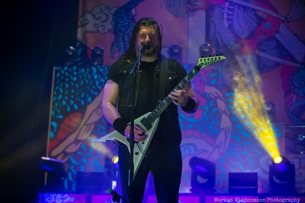 Obituary are always an elemental force on stage and that they have to be the second band this evening is understandable and yet also a bit of a pity. With 45 minutes playing time the guys still have the chance to present the fantastic songs of the new album. ‘Dying of Everything’ and especially ‘The Wrong Time’ are welcomed enthusiastically and of course the closing ‘I’m in Pain’ has to be on the setlist too. Overall, the guys from Tampa focus on the more recent albums, which means that we don’t get any songs from ‘Slowly We Rot’ and ‘Cause of Death’ performed tonight. Instead Obituary include with ‘Circle of the Tyrant’ a Celtic Frost homage.