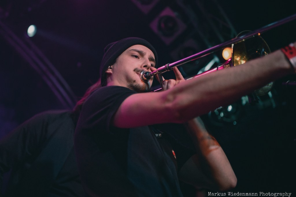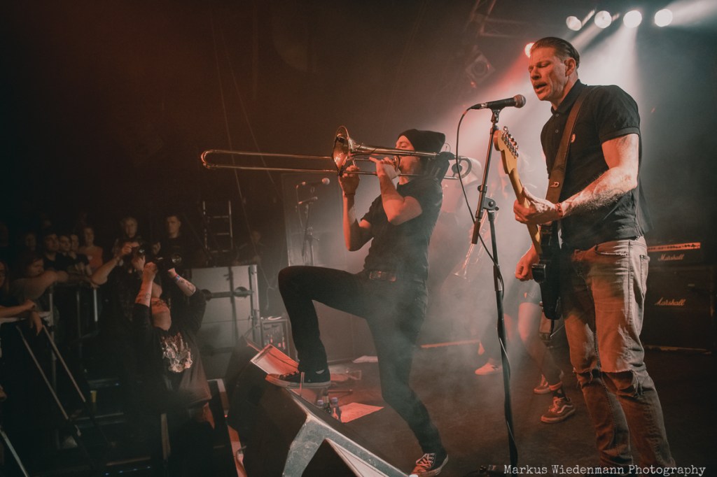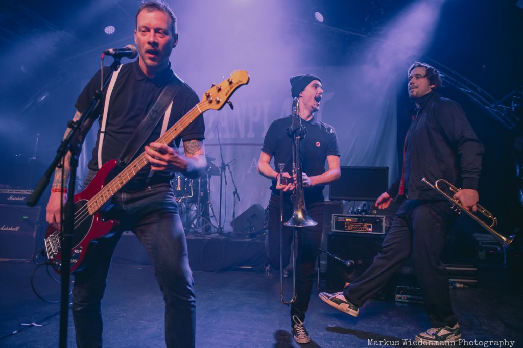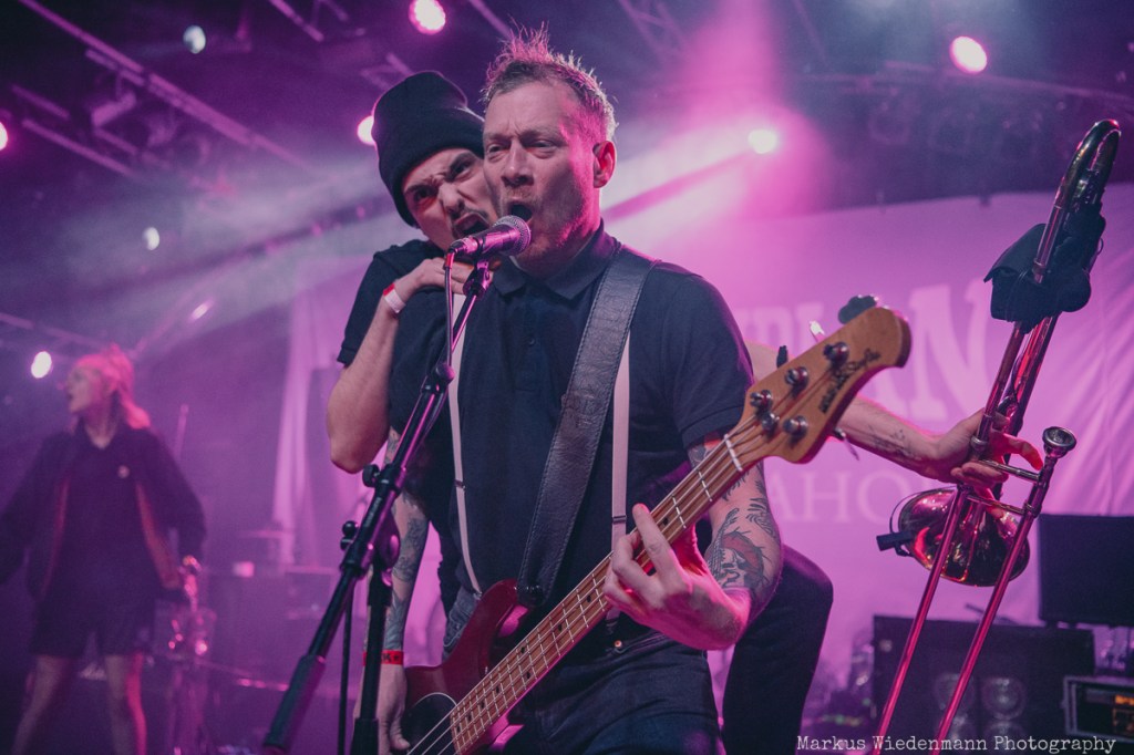 After a very short changeover break, Rantanplan, a Hamburg institution, come on stage. With their ska punk, the guys and girls raise the vibe once again. In addition, it is a little tighter on the stage with seven musicians, but this does not detract from the urge of everyone to move. Dancing is the order of the day in the Markthalle, on stage and in front of it.