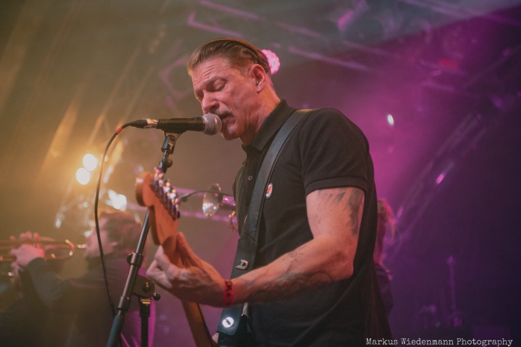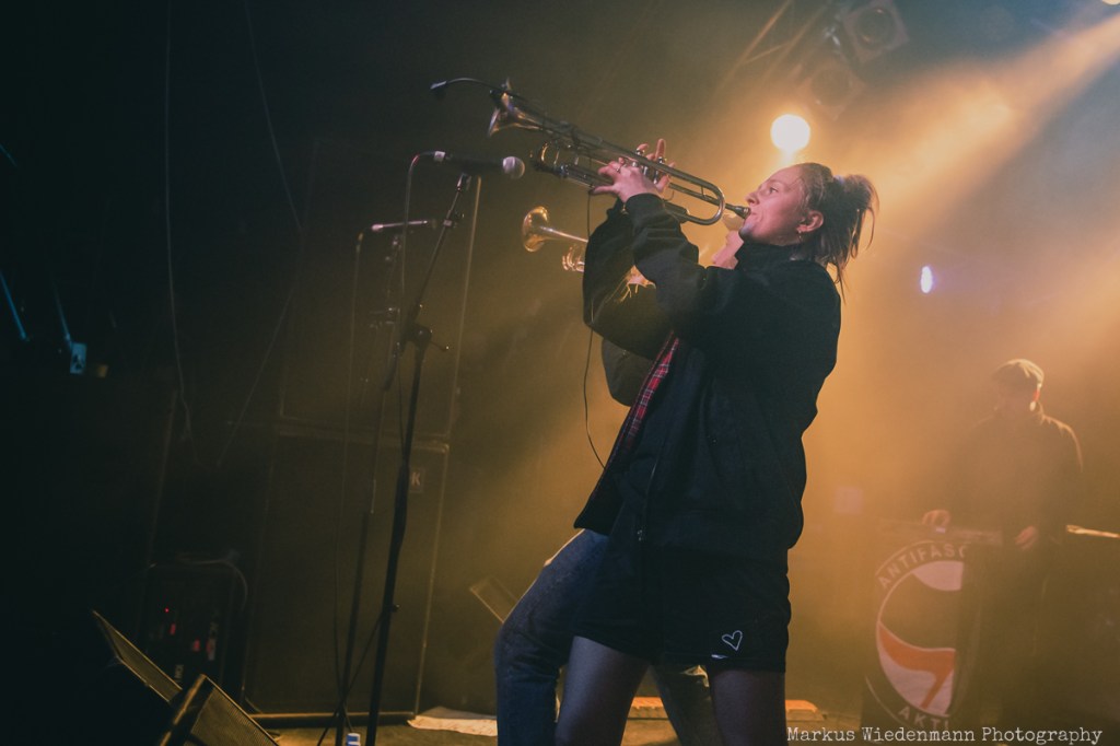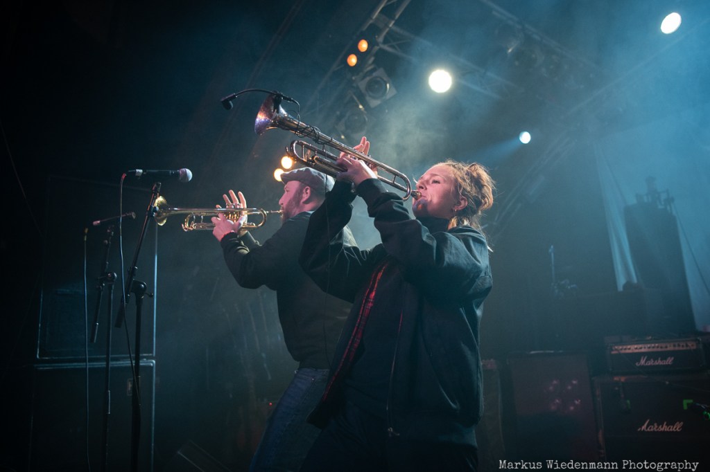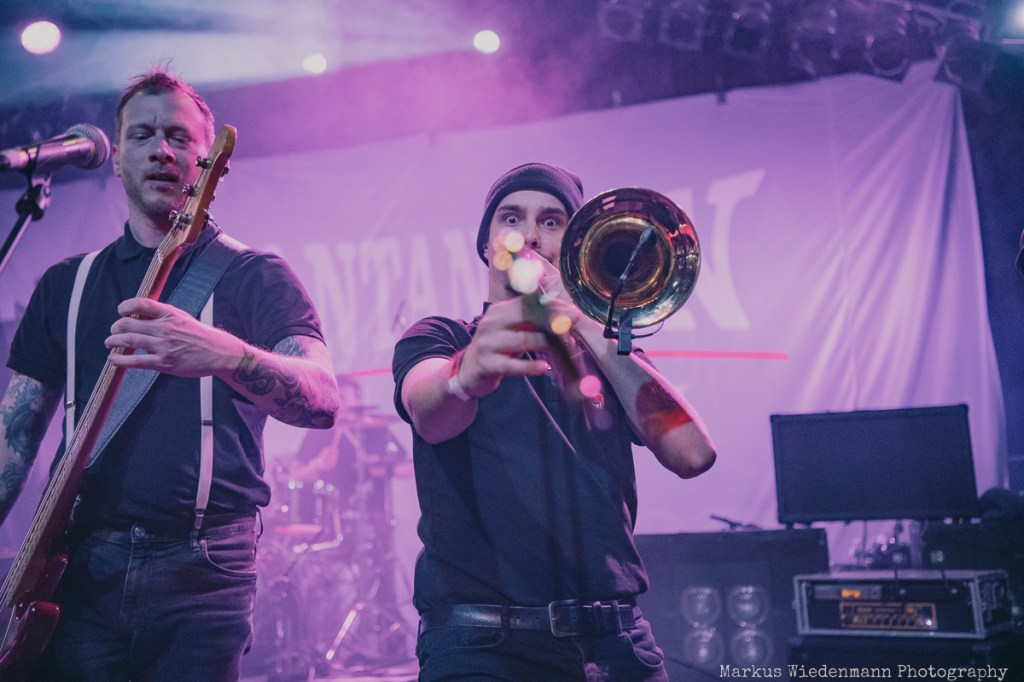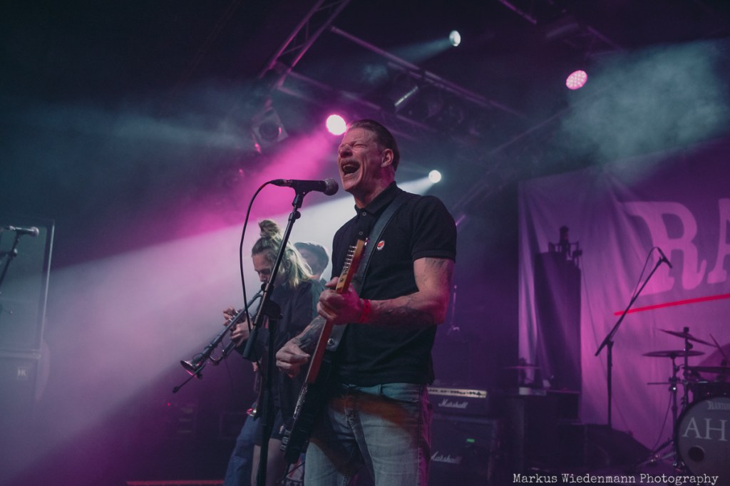 After a very short changeover break, Rantanplan, a Hamburg institution, come on stage. With their ska punk, the guys and girls raise the vibe once again. In addition, it is a little tighter on the stage with seven musicians, but this does not detract from the urge of everyone to move. Dancing is the order of the day in the Markthalle, on stage and in front of it.