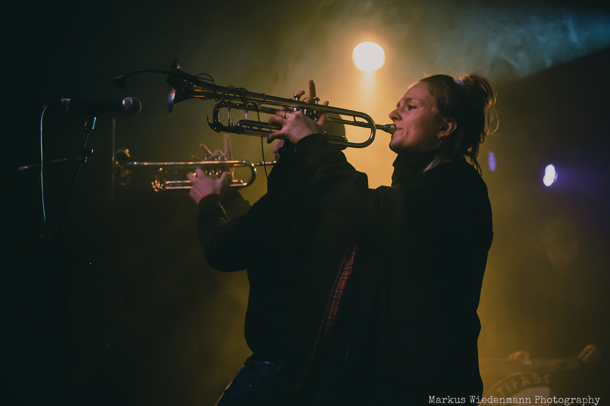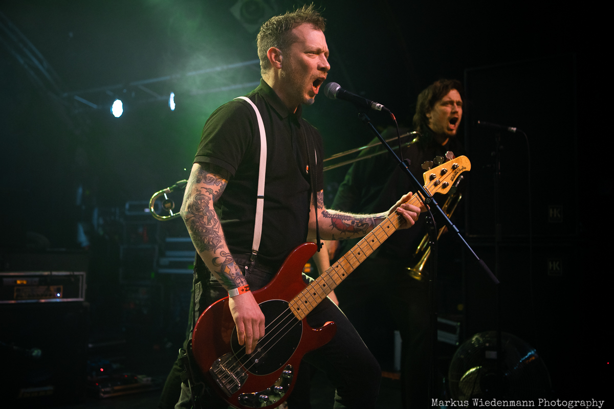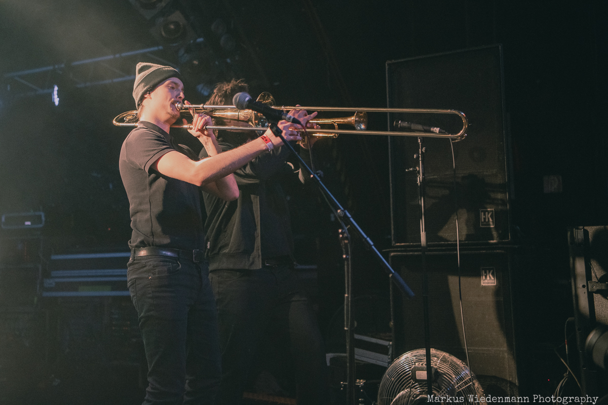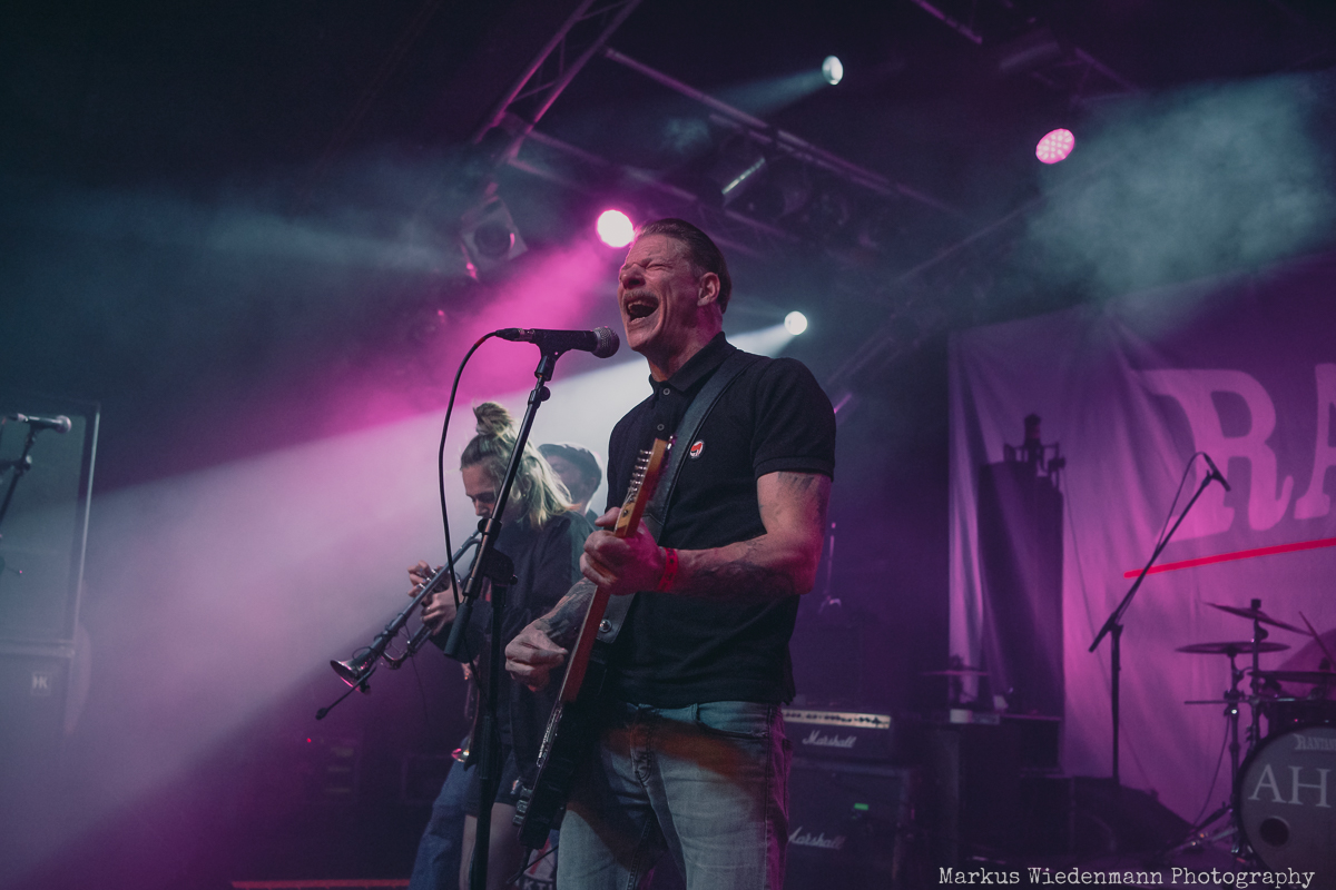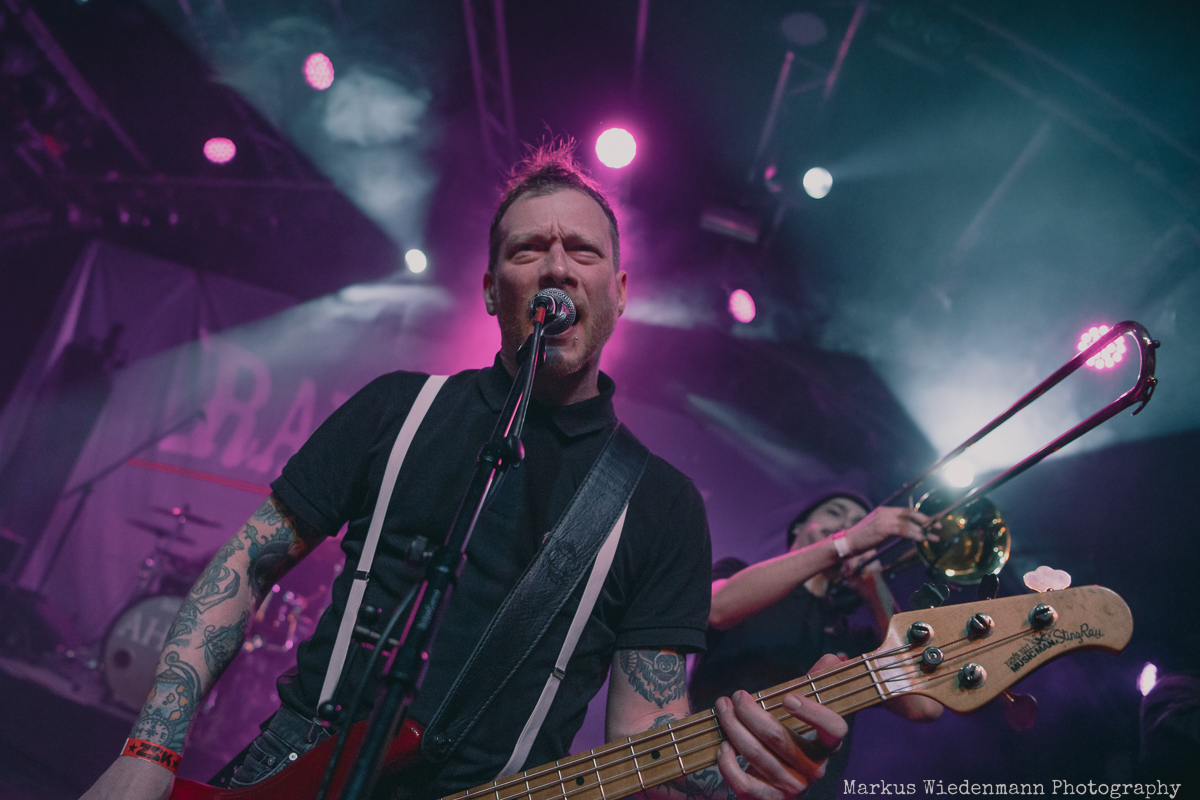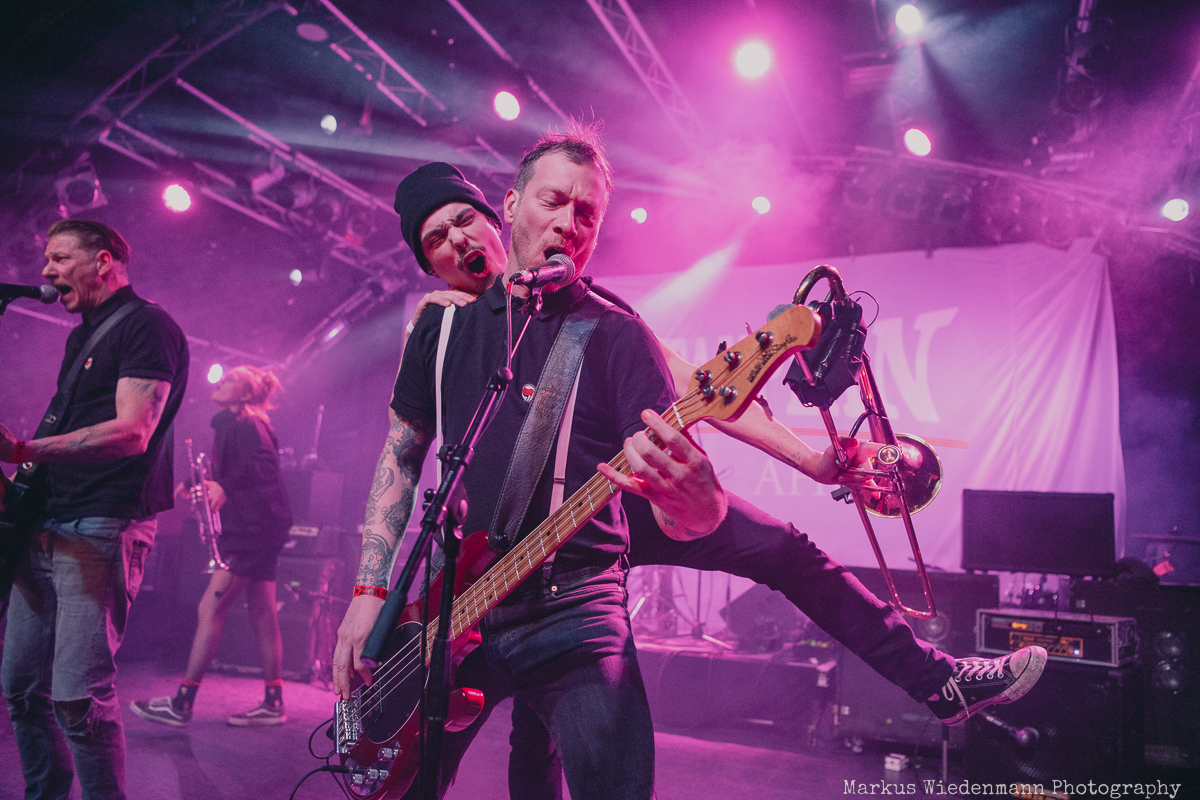 After a very short changeover break, Rantanplan, a Hamburg institution, come on stage. With their ska punk, the guys and girls raise the vibe once again. In addition, it is a little tighter on the stage with seven musicians, but this does not detract from the urge of everyone to move. Dancing is the order of the day in the Markthalle, on stage and in front of it.