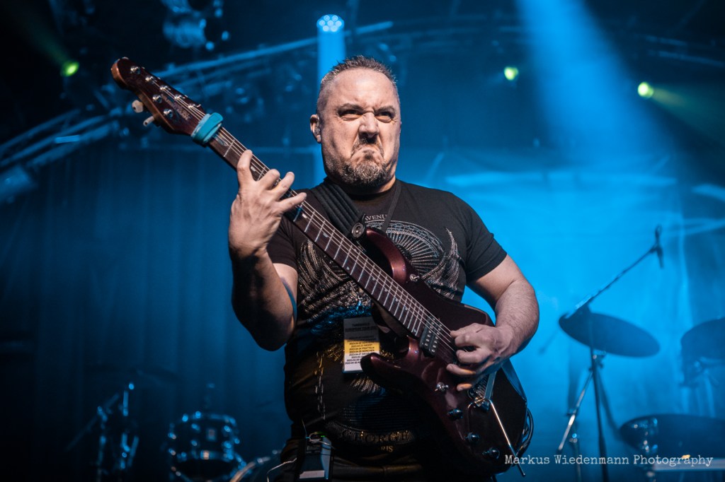 The breaks are kept extremely short this evening, which is good for the flow and the spirit. When Threshold enters the stage under applause, the atmosphere as well as the anticipation increases. With ‘Haunted’ the bands with a new song and also the following ‘The Domino Effect’ is taken from the ‘Dividing Lines’ album. As not to be expected differently, Threshold deliver. There is no question that the quality of the Brits is perfect. Moreover, the guys seem to be hungry for live shows, because they play a more than 90 minutes set, which includes a lot of new material (‘Complex’, ‘Silenced’,..) as well as the classics from the last two decades. With ‘Defence Condition’ also my favorite song of the new album has found a place on the setlist and so everyone has his delightful moments tonight. This also applies to the band members themselves, who obviously enjoy being able to finally play live again. It is drummer Johanne James who is not only the beat-setting powerhouse of the band, but is also always active behind his drum kit. Sometimes standing, sometimes by mimics and furthermore animating the fans to wave their hands leads to an extra applause for the iconic drummer.