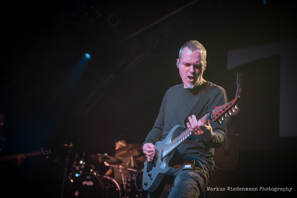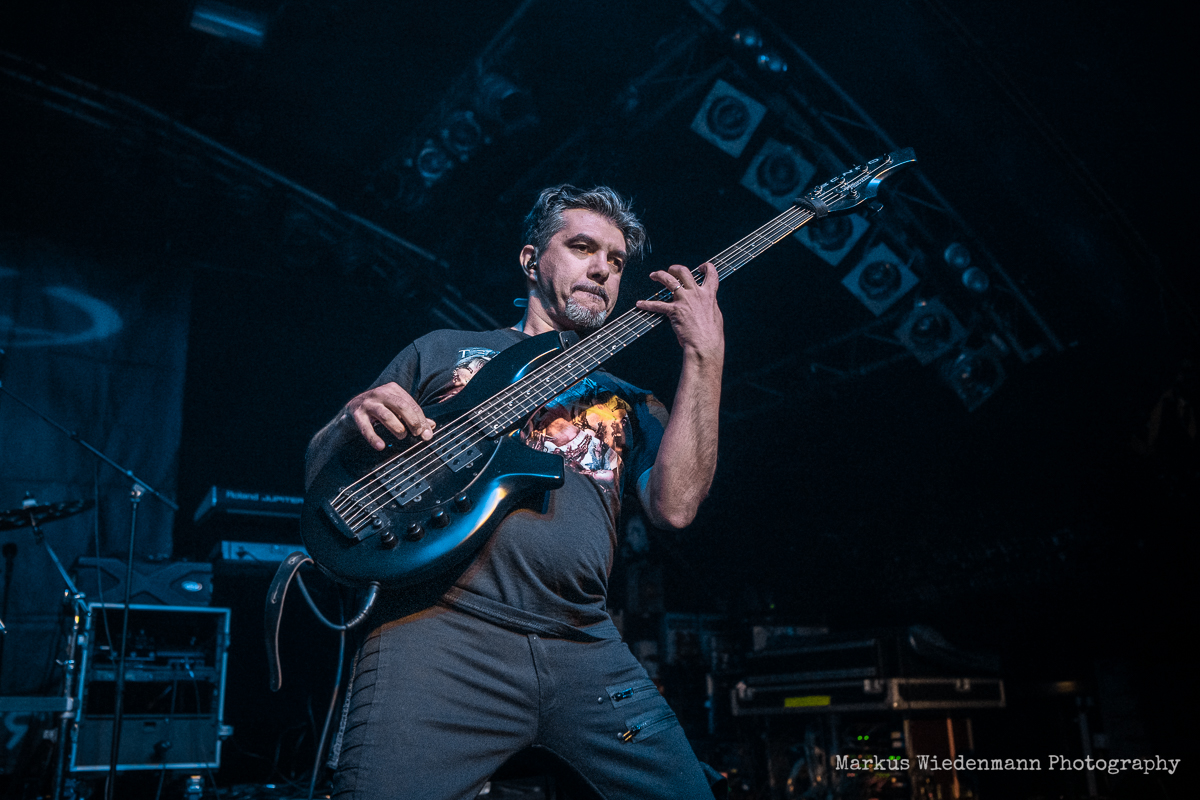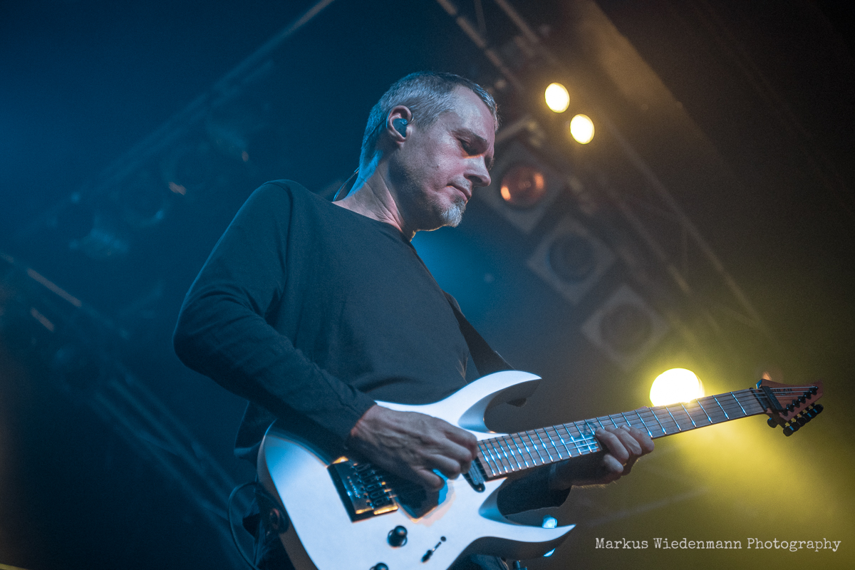 The breaks are kept extremely short this evening, which is good for the flow and the spirit. When Threshold enters the stage under applause, the atmosphere as well as the anticipation increases. With ‘Haunted’ the bands with a new song and also the following ‘The Domino Effect’ is taken from the ‘Dividing Lines’ album. As not to be expected differently, Threshold deliver. There is no question that the quality of the Brits is perfect. Moreover, the guys seem to be hungry for live shows, because they play a more than 90 minutes set, which includes a lot of new material (‘Complex’, ‘Silenced’,..) as well as the classics from the last two decades. With ‘Defence Condition’ also my favorite song of the new album has found a place on the setlist and so everyone has his delightful moments tonight. This also applies to the band members themselves, who obviously enjoy being able to finally play live again. It is drummer Johanne James who is not only the beat-setting powerhouse of the band, but is also always active behind his drum kit. Sometimes standing, sometimes by mimics and furthermore animating the fans to wave their hands leads to an extra applause for the iconic drummer.