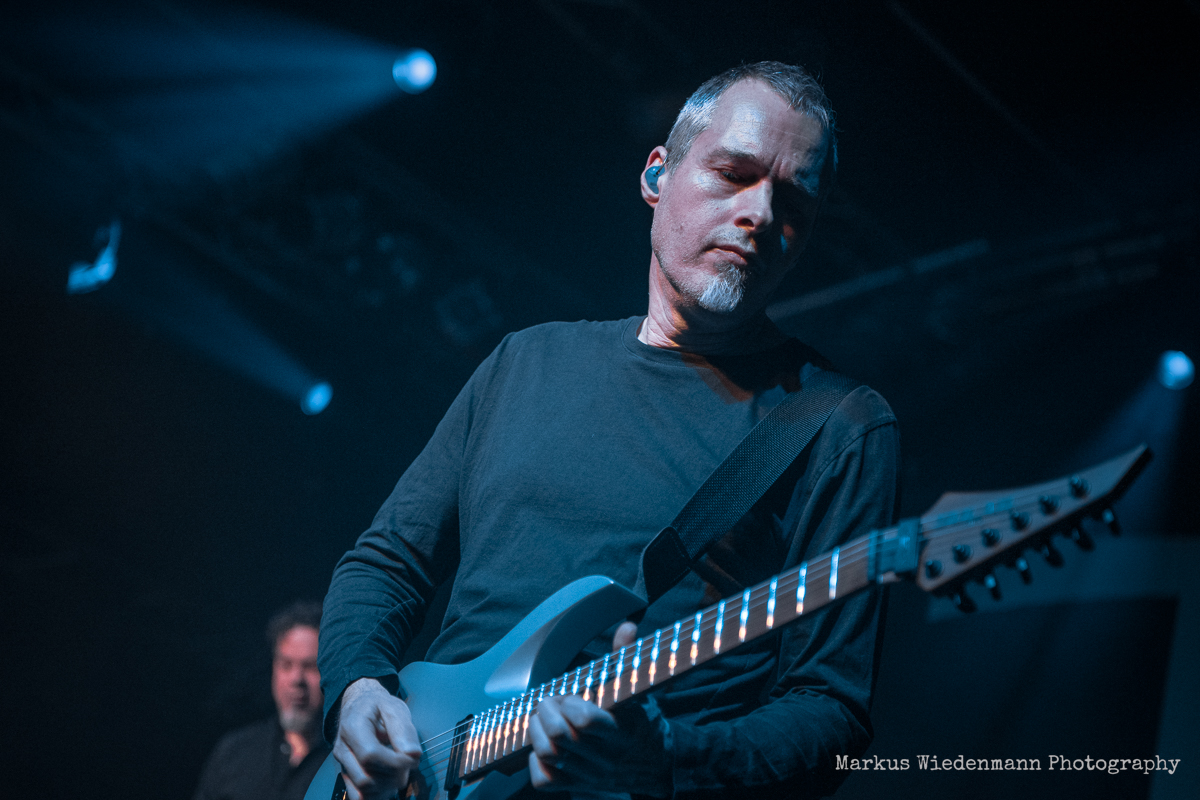 The second support act, Virtual Symmetry, creates more of an atmosphere. It seems that a significant part of the audience came for the Swiss prog metal specialists. The songs are applauded and the good vibe in the Markthalle gets going. Virtual Symmetry combine powerful and grooving riffs with well done vocal melodies. This mix is exactly what makes an ideal support act for tonight. I knew the band from Lugano only by name until today and I am impressed by what the guys have in their offer.