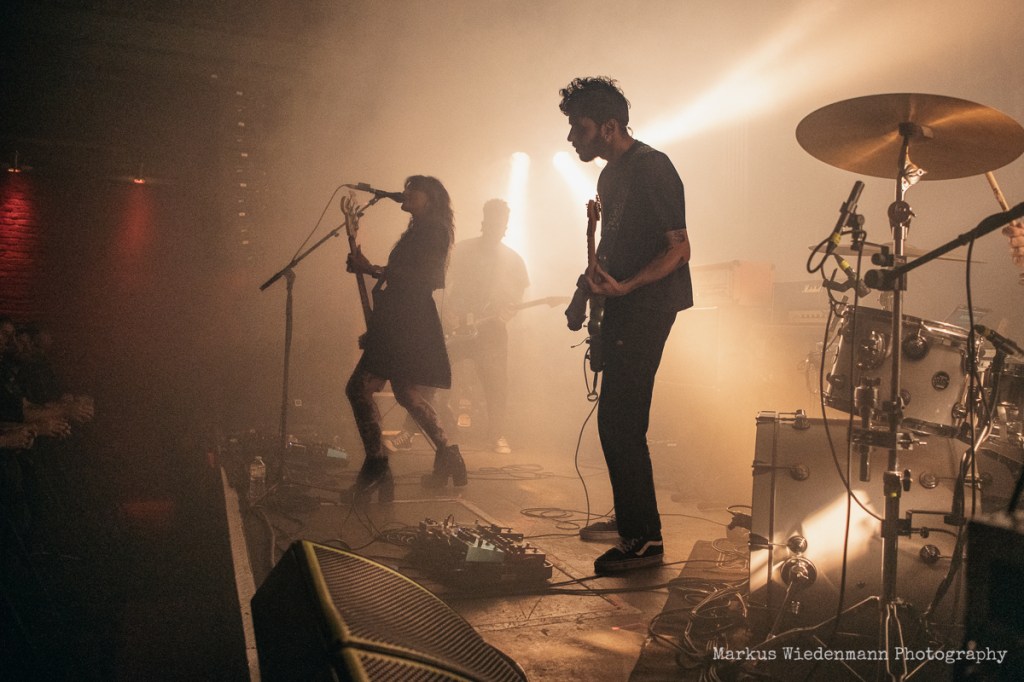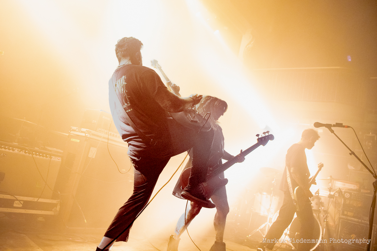 Slow Crush get with 40 minutes plenty of playing time and use it from beginning to end. It is noticeable that the audience is also fully engaged. In addition, the hall is already well filled when the fog machine turns the stage into an non-transparent something for the first time. Also shying away from the light a bit, Slow Crush perform their dark shoegaze sound and get into the hearts of the fans, who follow the sounds of the Belgians with partly closed eyes, while others indulge in extensive head nodding.